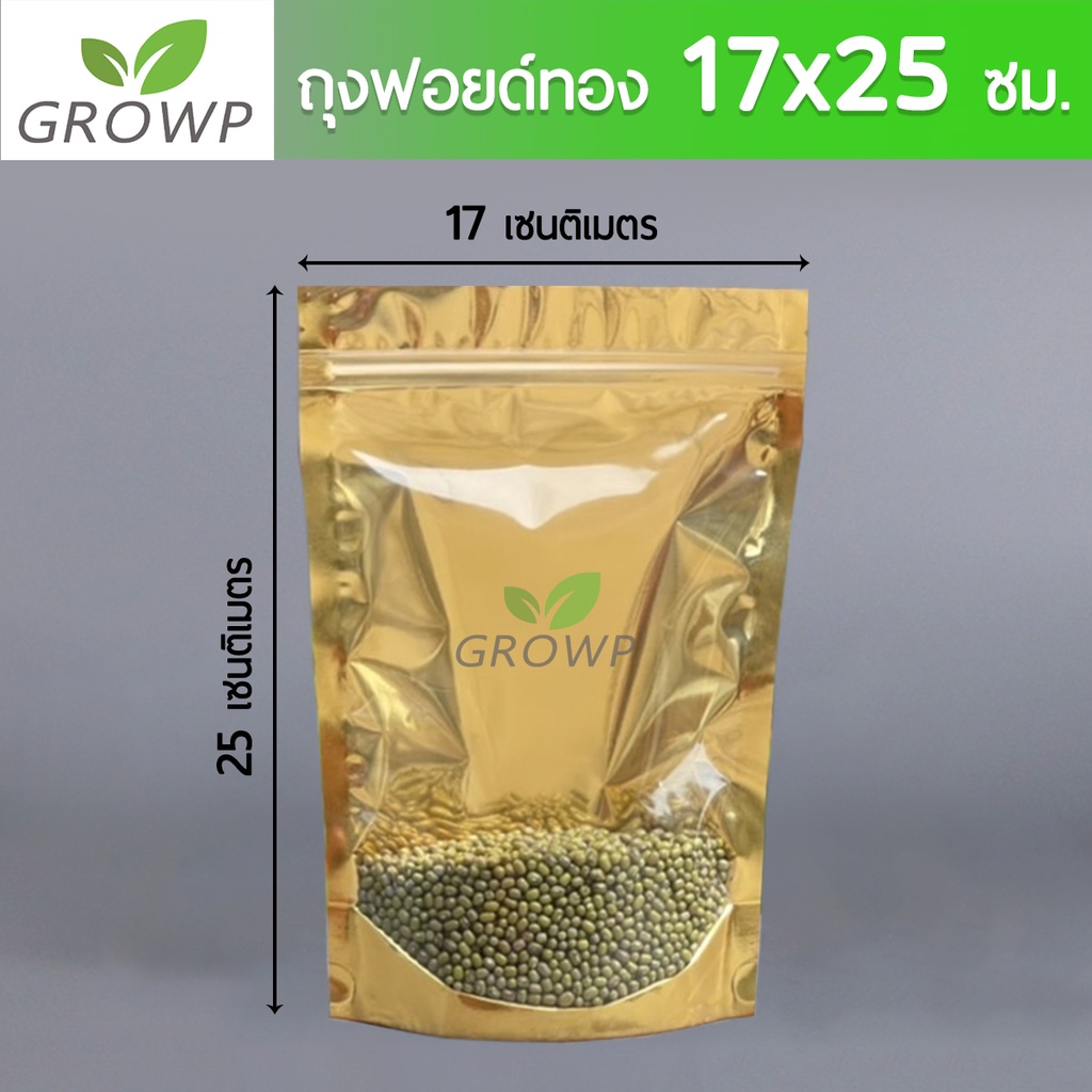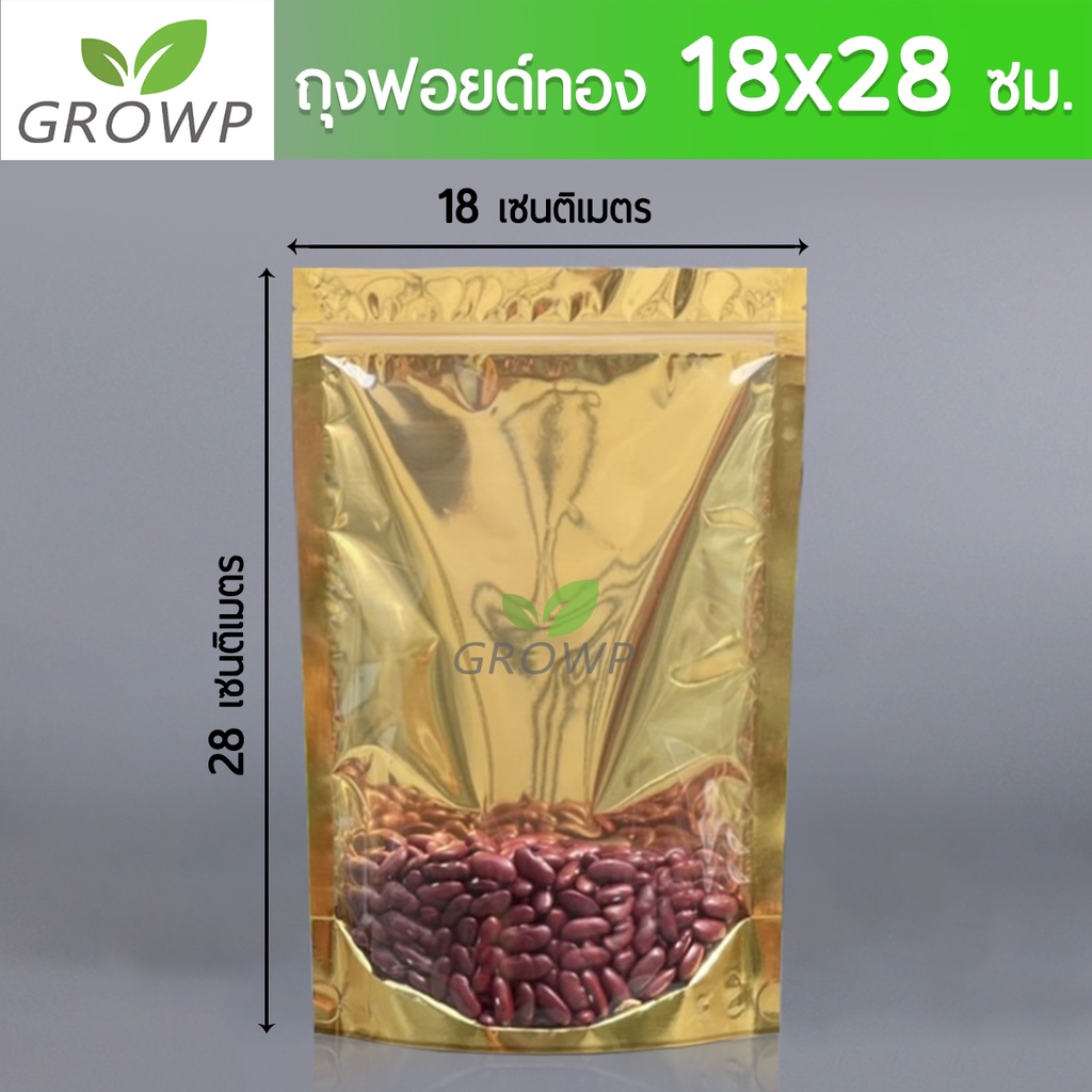 A-4 ถุงซิป ฟอยด์สีทอง (แพคละ 50ใบ) ด้านหน้าใส-ด้านหลังทึบ ตั้งได้