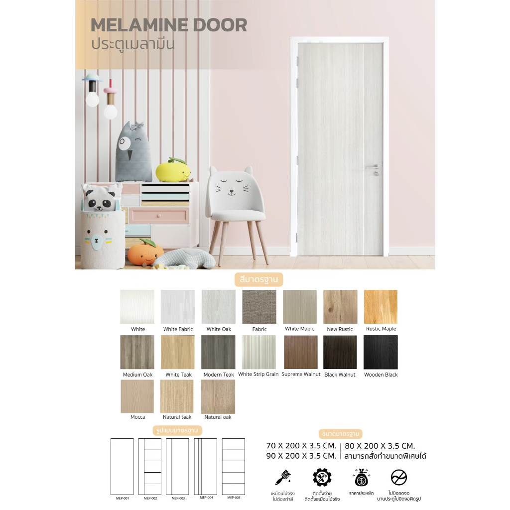 (พร้อมส่ง) ประตูไม้ สำหรับห้องนอน ขนาด 80x200x3.5 ซม.