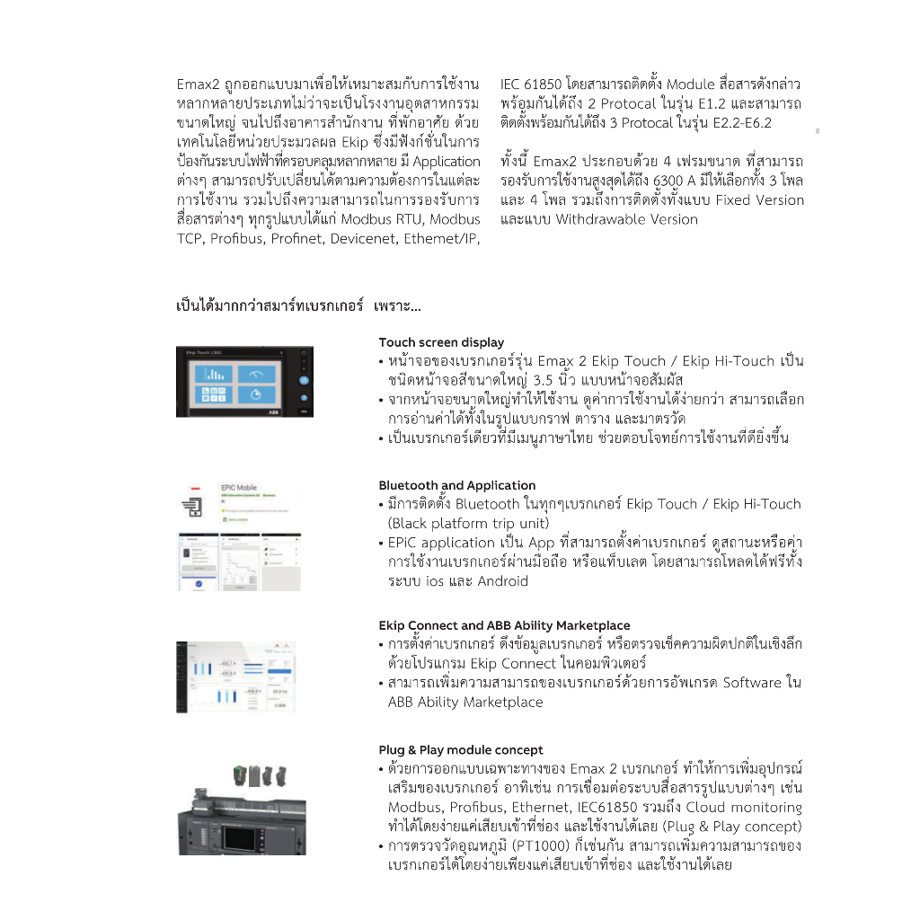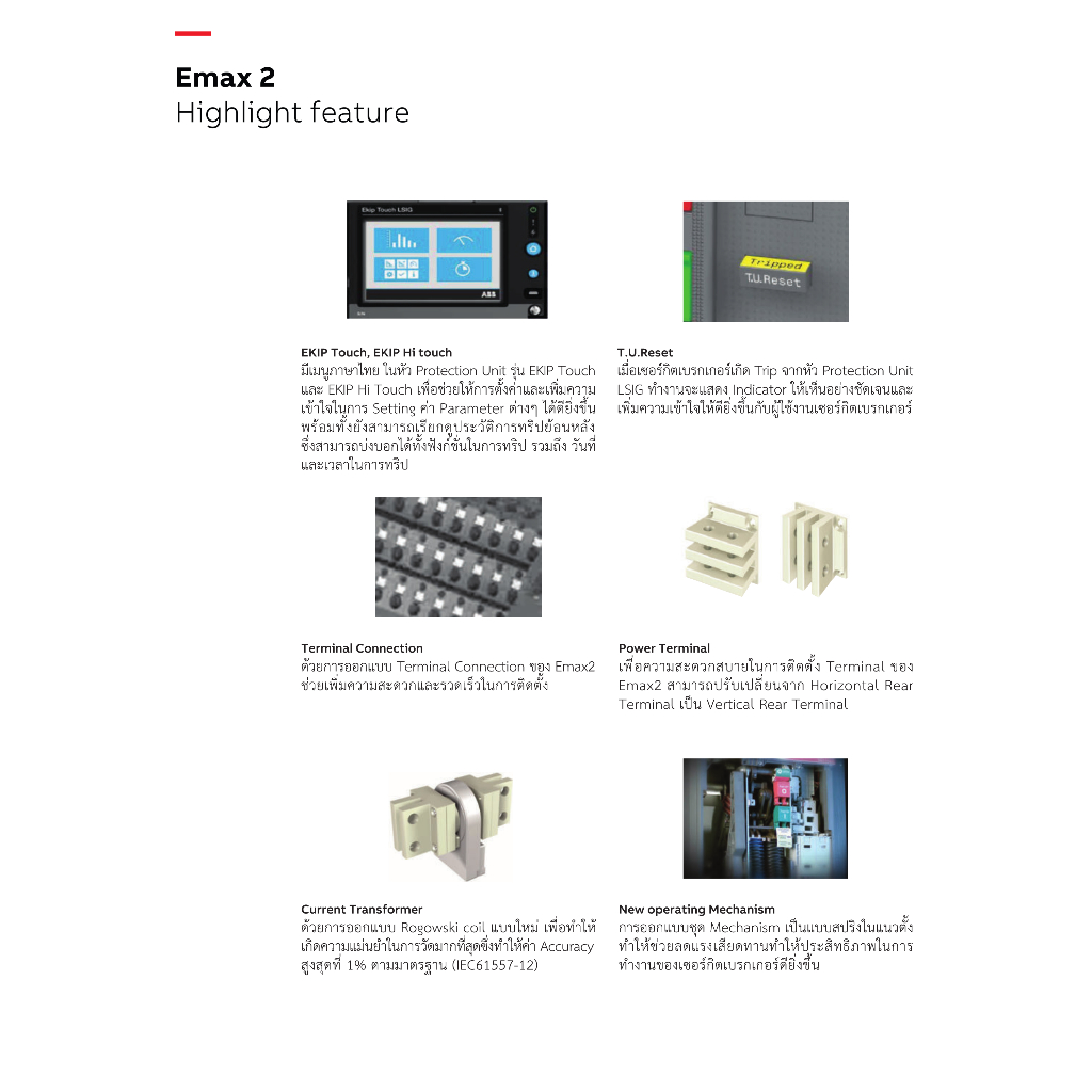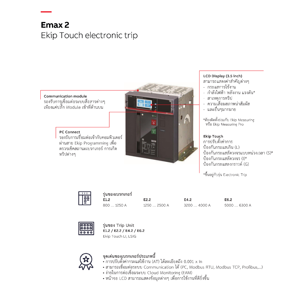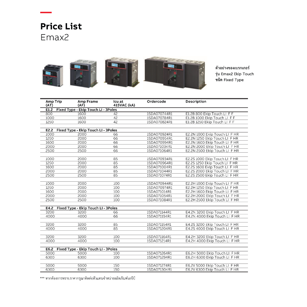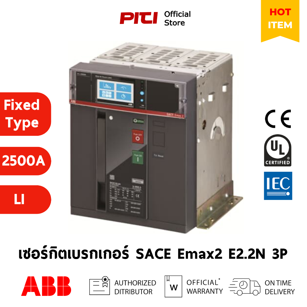 ABB เซอร์กิตเบรกเกอร์ SACE Emax2 E2.2N 2500 Fixed Type Ekip Touch LI F HR 3P 66kA # 1SDA071064R1