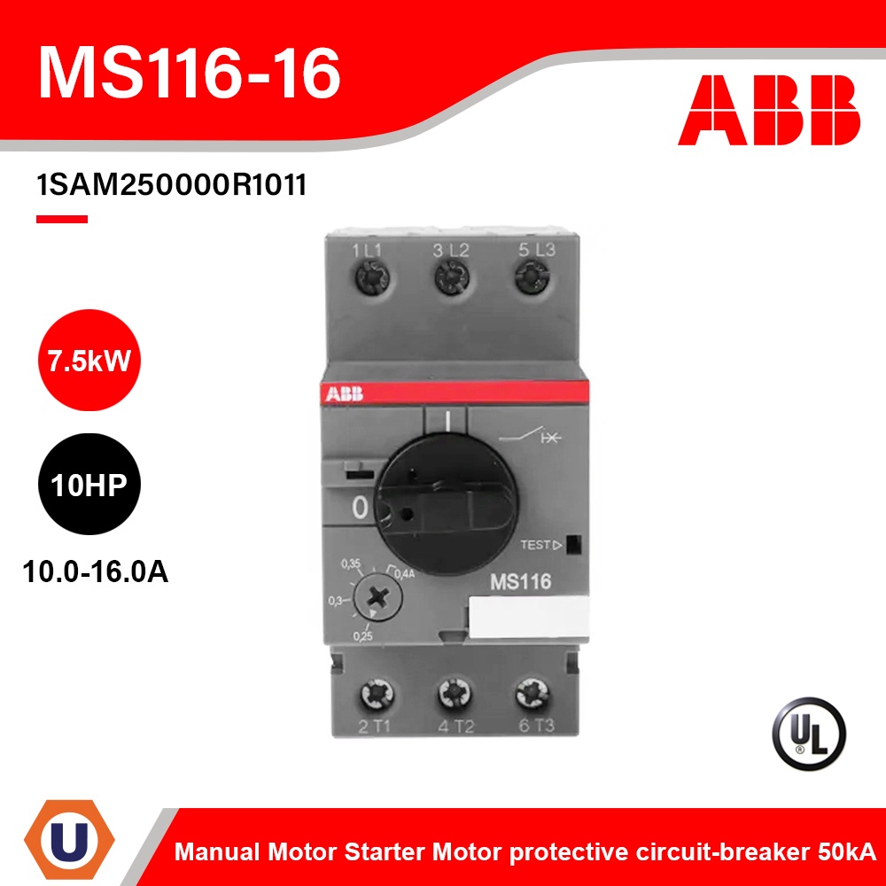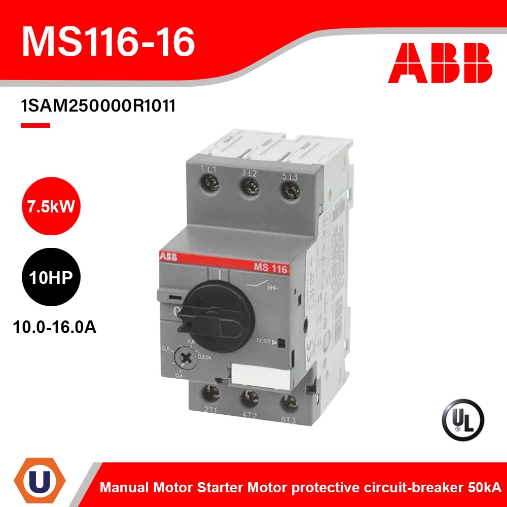 ABB - MS116-16 Manual Motor Starter Motor protective circuit-breaker 10-16A, 50kA - 1SAM250000R1011 - Ucanbuys