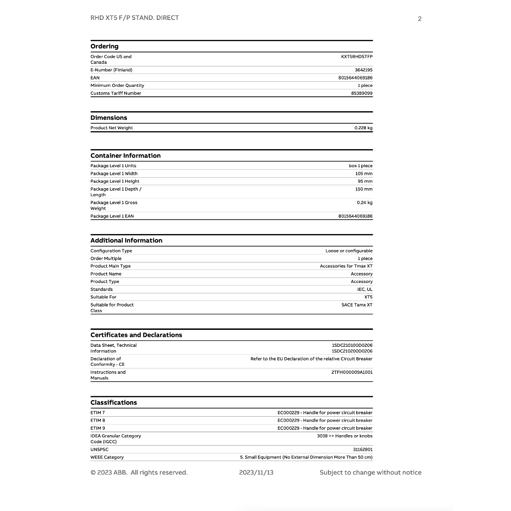 ABB ลูกบิดมือหมุนติดหน้าตู้ RHD XT5-XT6 F/P Normal Direct Rotary-RHD XT5 Normal Direct