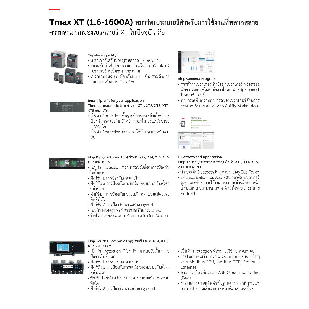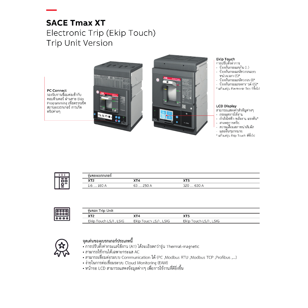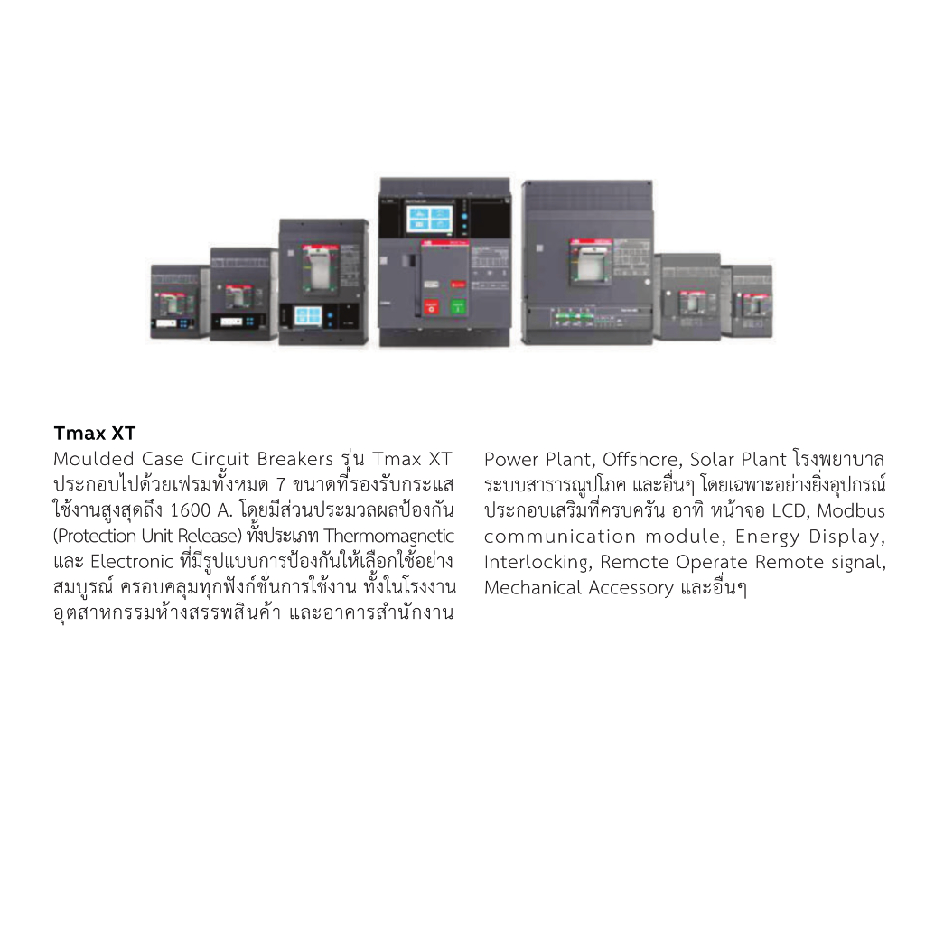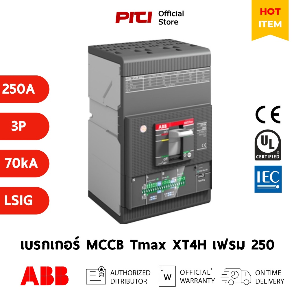 ABB เบรกเกอร์ MCCB Tmax XT4H 250 (LS/I, LSI, LSIG) 250A 3P (70kA) F F Moulded Case Circuit Breaker
