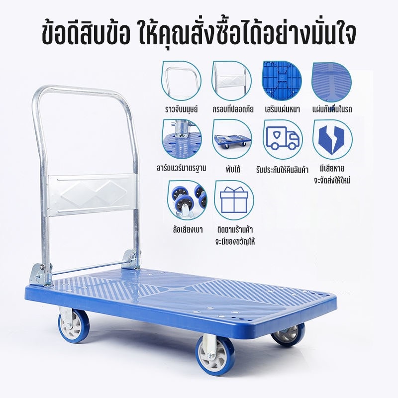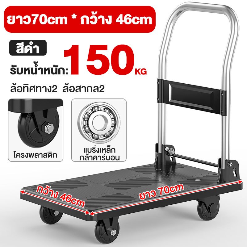 ABBY รถเข็นของ 4 ล้อ รถเข็นพับได้ 90*60cm พับได้ รับน้ำหนักได้ 1000กก ท่อเหล็กหนา ล้อยาง 4นิ้ว/5 นิ้ว/6 นิ้ว แข็งแรง ทนท