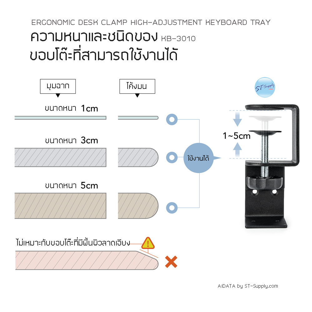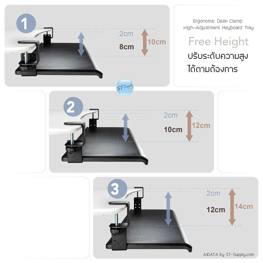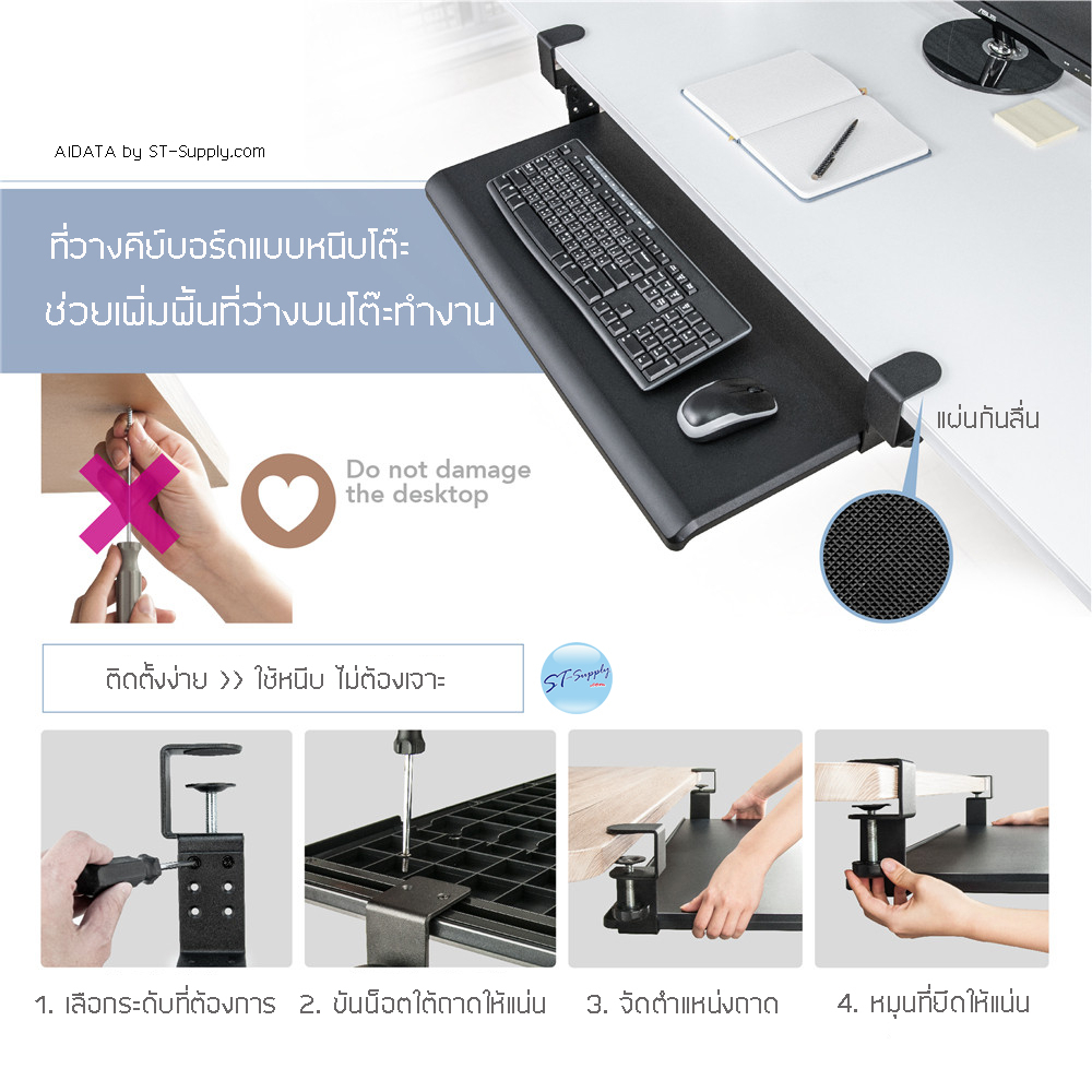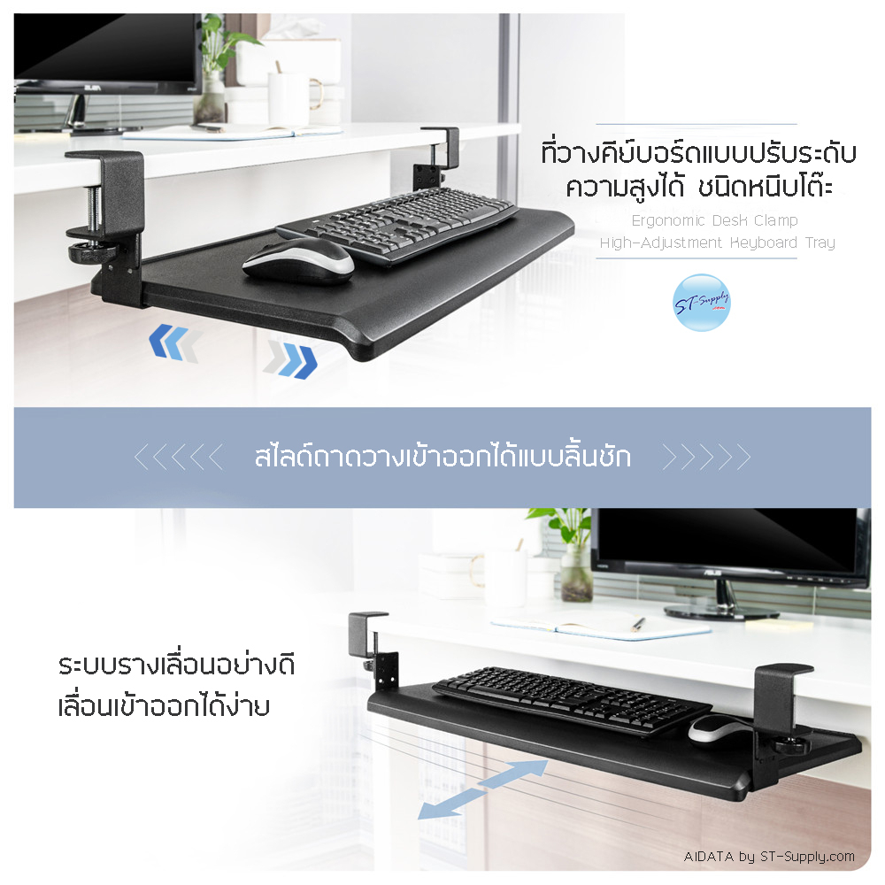 AIDATA by ST-Supply.com ที่วางคีย์บอร์ดแบบปรับระดับความสูงได้ชนิดหนีบโต๊ะ รุ่น KB-3010