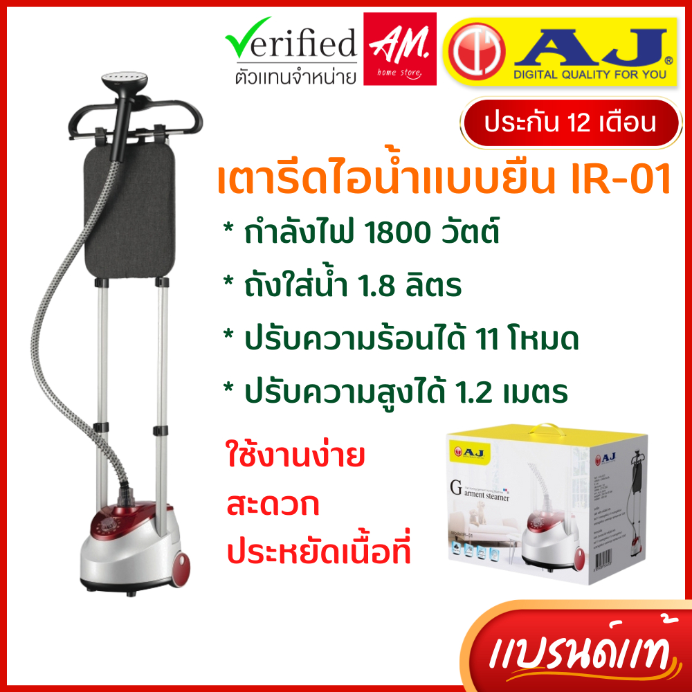 AJ เตารีดไอน้ำ เเบบยืน รุ่น IR-01 สูงถึง 1.2 เมตร 1800 วัตต์ ไอน้ำ11ระดับ ถังน้ำ 1.8 ลิตร ประกัน 1ปี