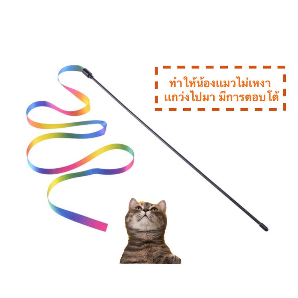 AL-259 ไม้ตกแมวสายรุ้ง ของเล่นแมว ไม้ล่อเเมวริบบิ้น ไม้แมวหางยาว 🔥 พร้อมส่ง 🔥