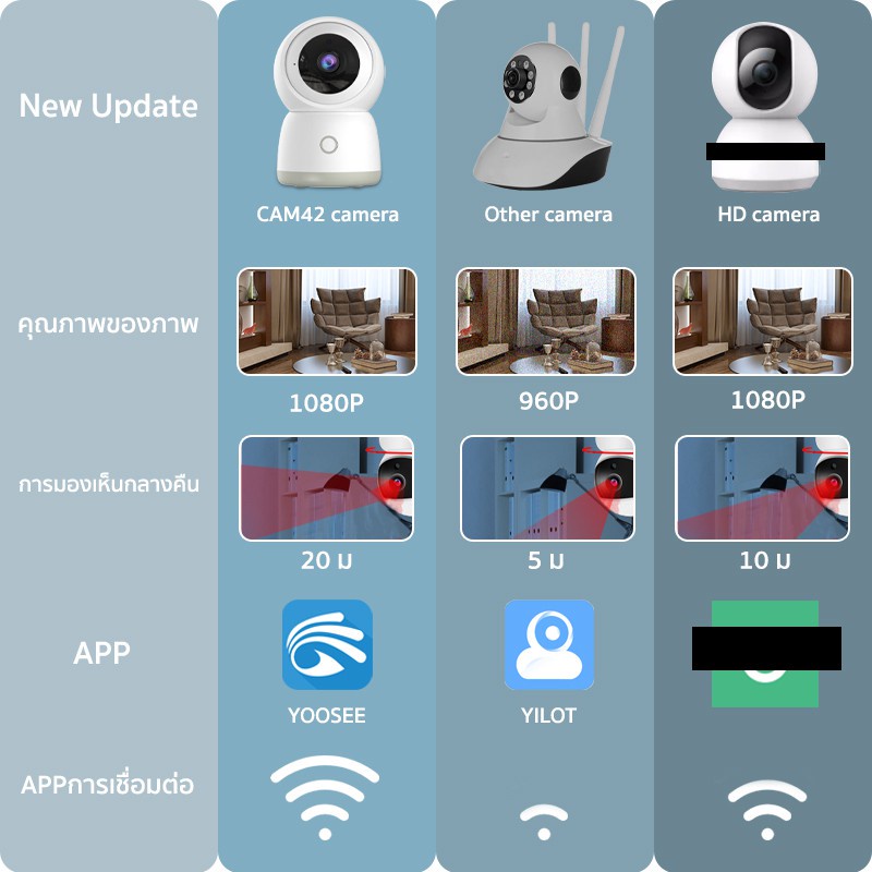 ALLSEECAN YOOSEE กล้องไร้สาย กล้องวงจรปิด Full HD 1080P Wifi 3.0 ล้านพิกเซล พร้อมโหมดกลางคืน CAM42