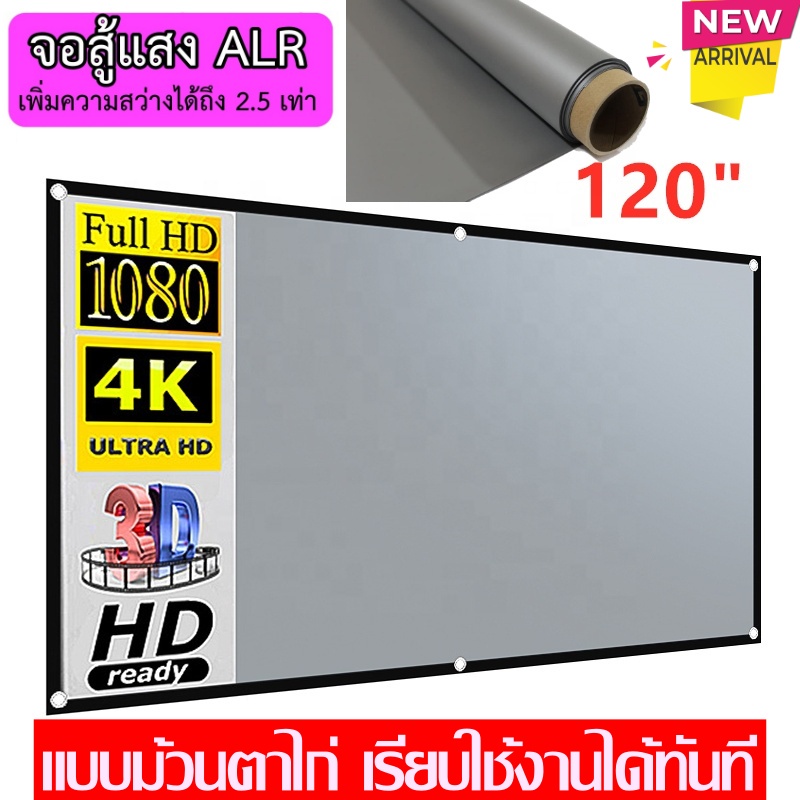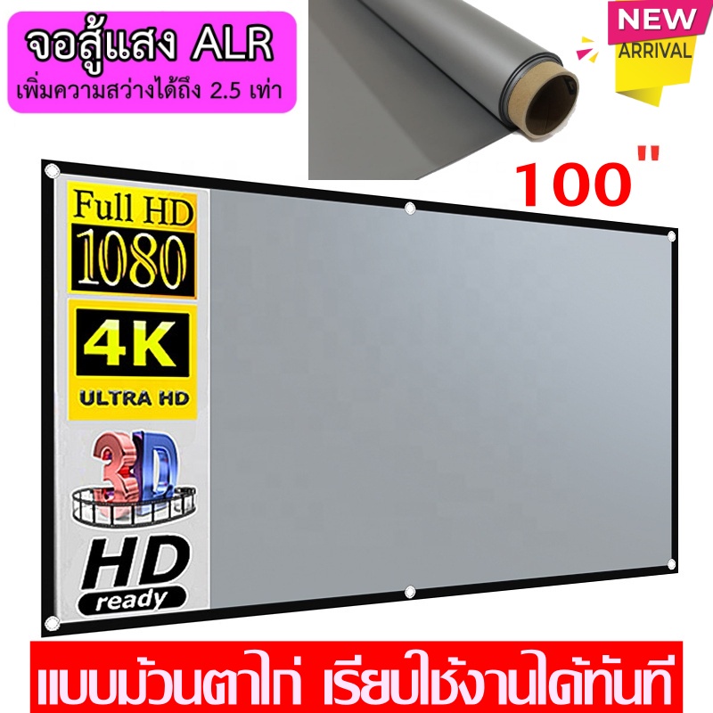 ALR Screen จอโปรเจคเตอร์ขนาด 100 120 130 นิ้ว แบบม้วนอย่างดีไม่ต้องรีด เพิ่มแสงและสี คมชัดเพิ่มสูงถึง 2.5 เท่า