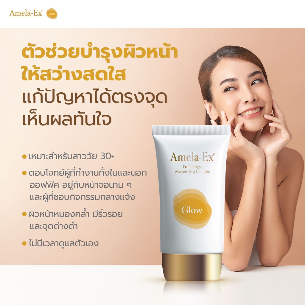 [EXP:07-12-2026] AMELA-EX GLOW 30 ml. ครีมบำรุงผิวหน้านวัตกรรมพิเศษ กระจ่างใส ลดเลือนรอยหมองคล้ำ ไม่ทำให้เป็นฝ้า
