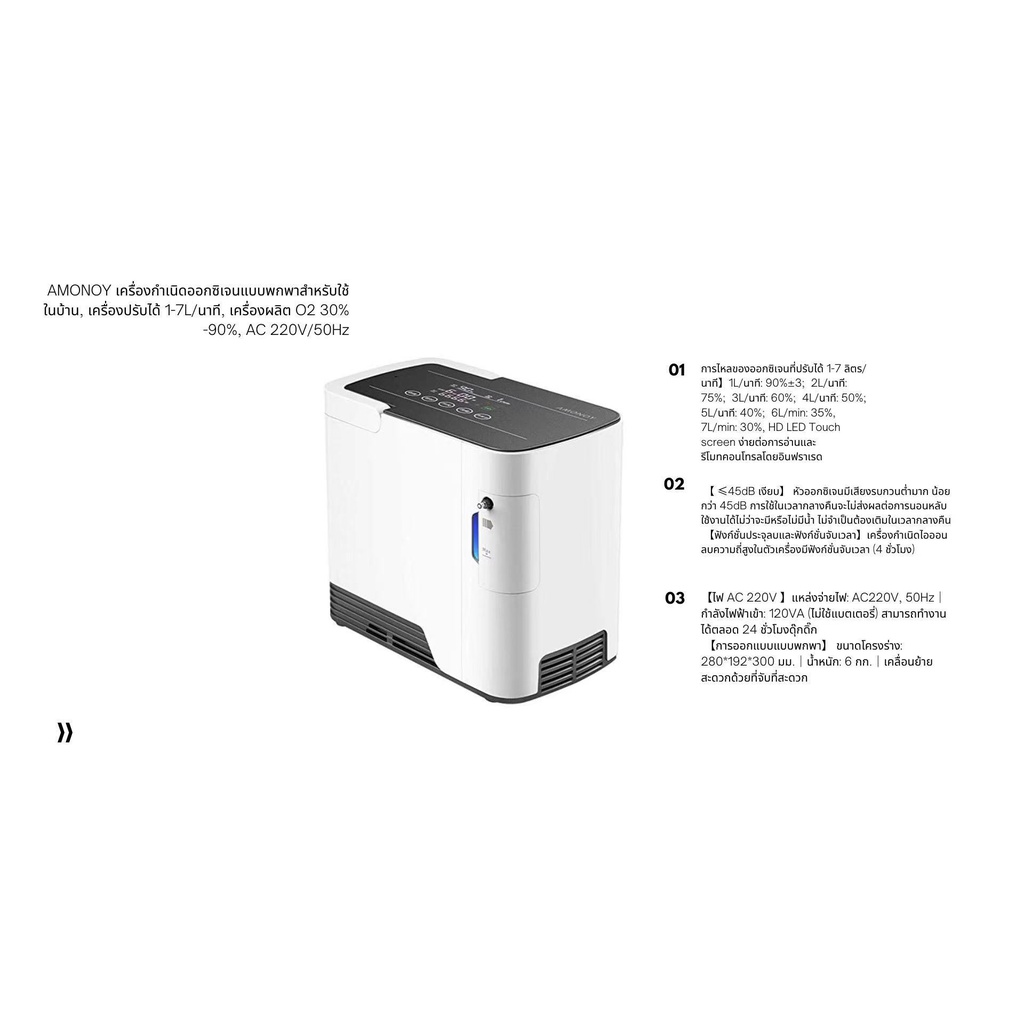 AMONOY Portable Oxygen Concentrators Generator for Home Use, 1-7L/min Adjustable Machine, 30%-90% O2 Maker, AC 220V/50Hz