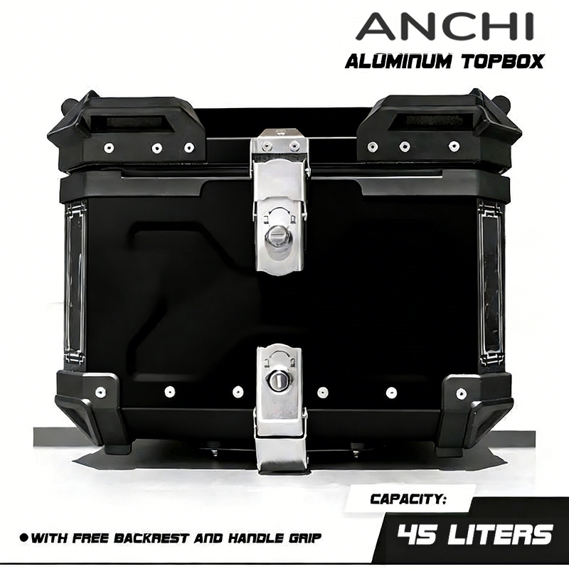 ANCHI กล่องหลังรถมอเตอร์ไซค์ กล่องท้ายมอไซ 45L ABS วัสดุ/วัสดุอะลูมิเนียม มีแถบสะท้อนแส พร้อมอุปกรณ์ถาดติดตั้ง