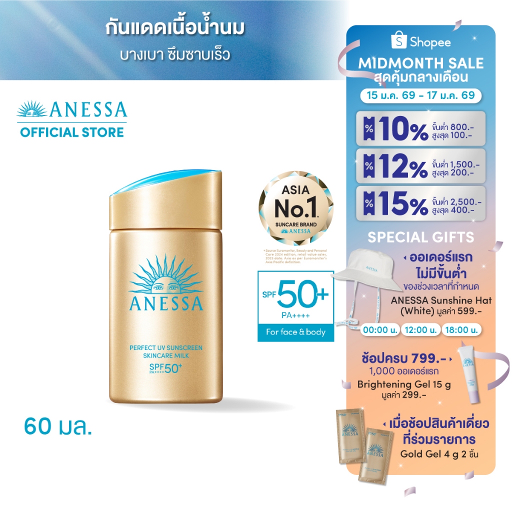 [พิเศษ 15-17 มค 69] ANESSA อเนสซ่า เพอร์เฟค ยูวี ซันสกรีน สกินแคร์ มิลค์ NA SPF50+PA++++ 60 มล.