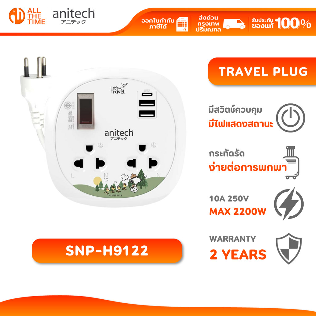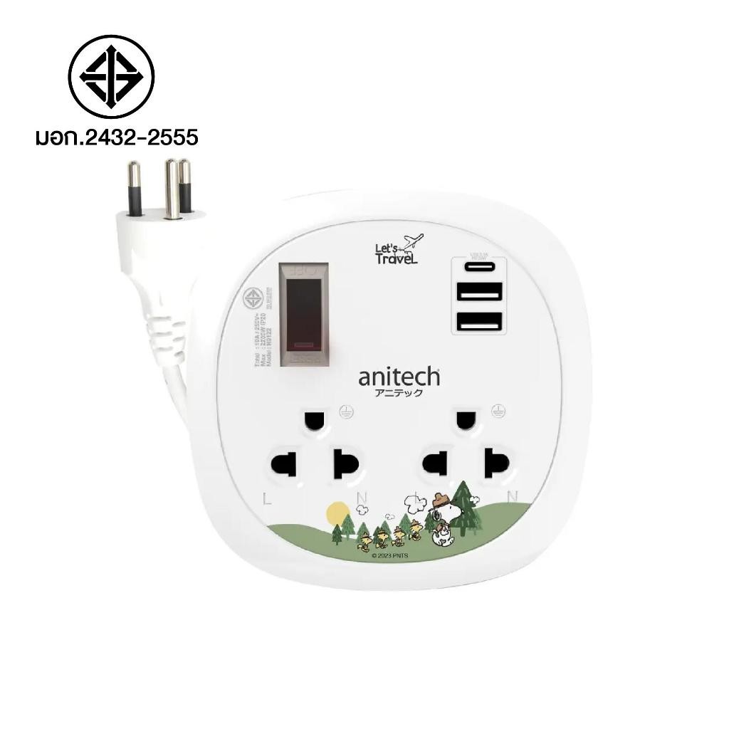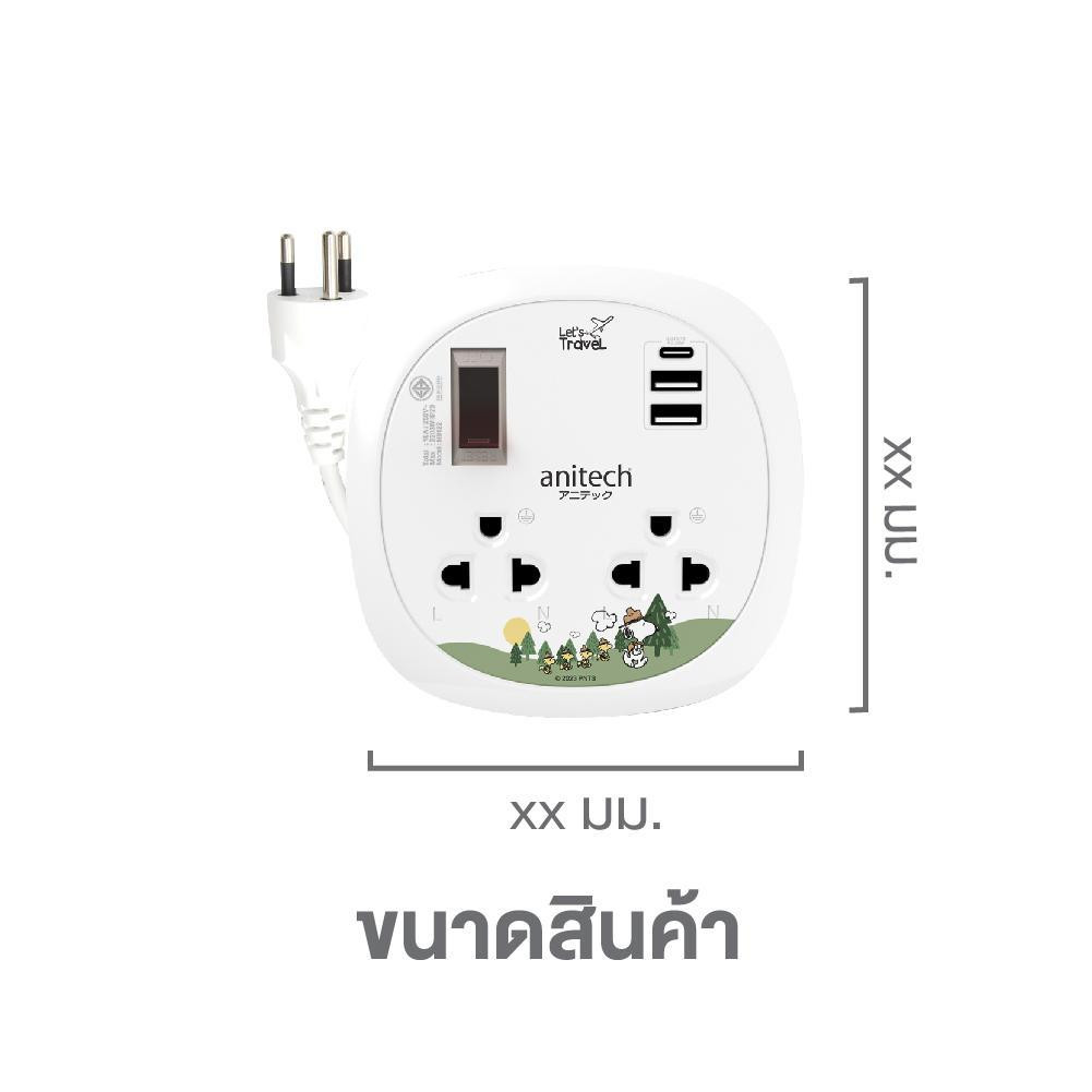 ANITECH X PEANUTS SNP-H9122 ปลั๊กพกพา ยาว 1 เมตร เก็บสายได้ ปลั๊กท่องเที่ยว รับประกัน 2 ปี