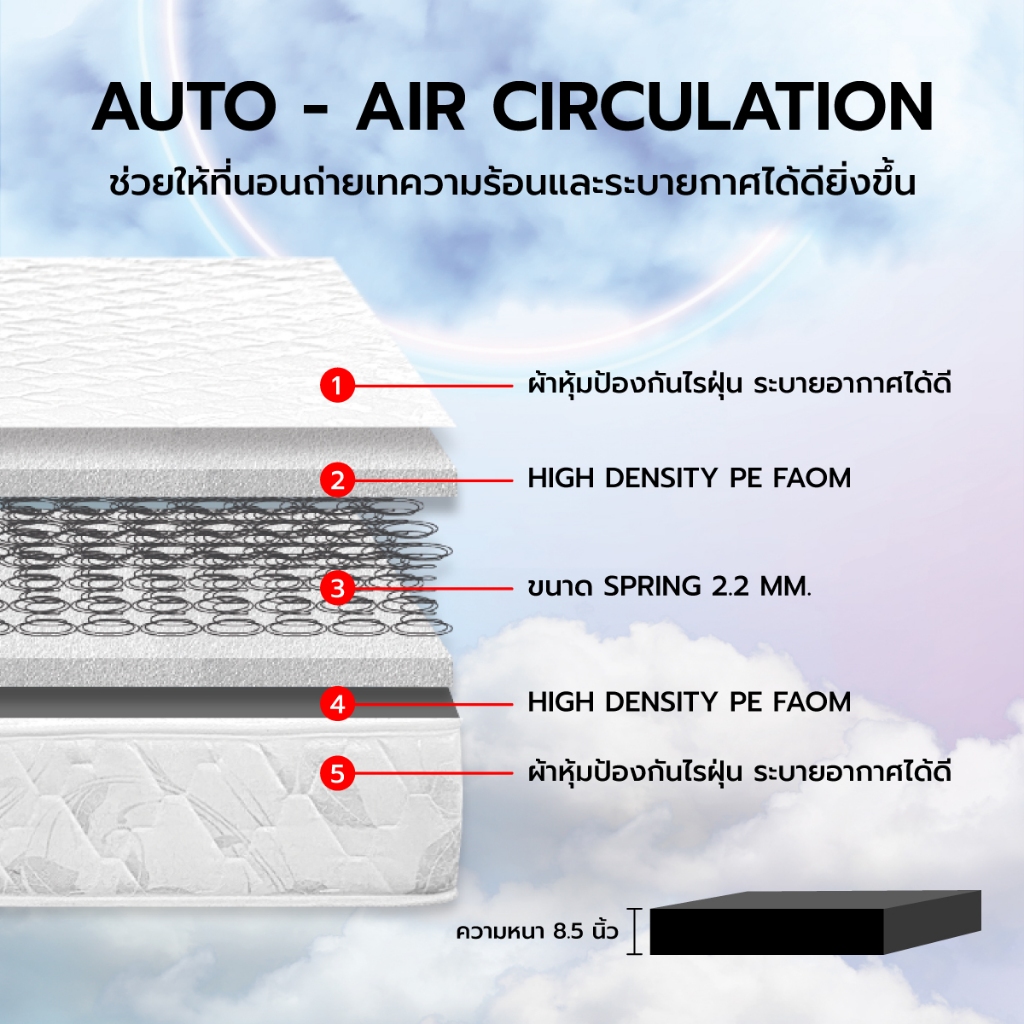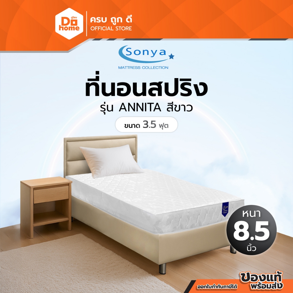 SONYA ที่นอนสปริง ขนาด 3.5 ฟุต หนา 8.5 นิ้ว รุ่น ANNITA สีขาว |LAN|
