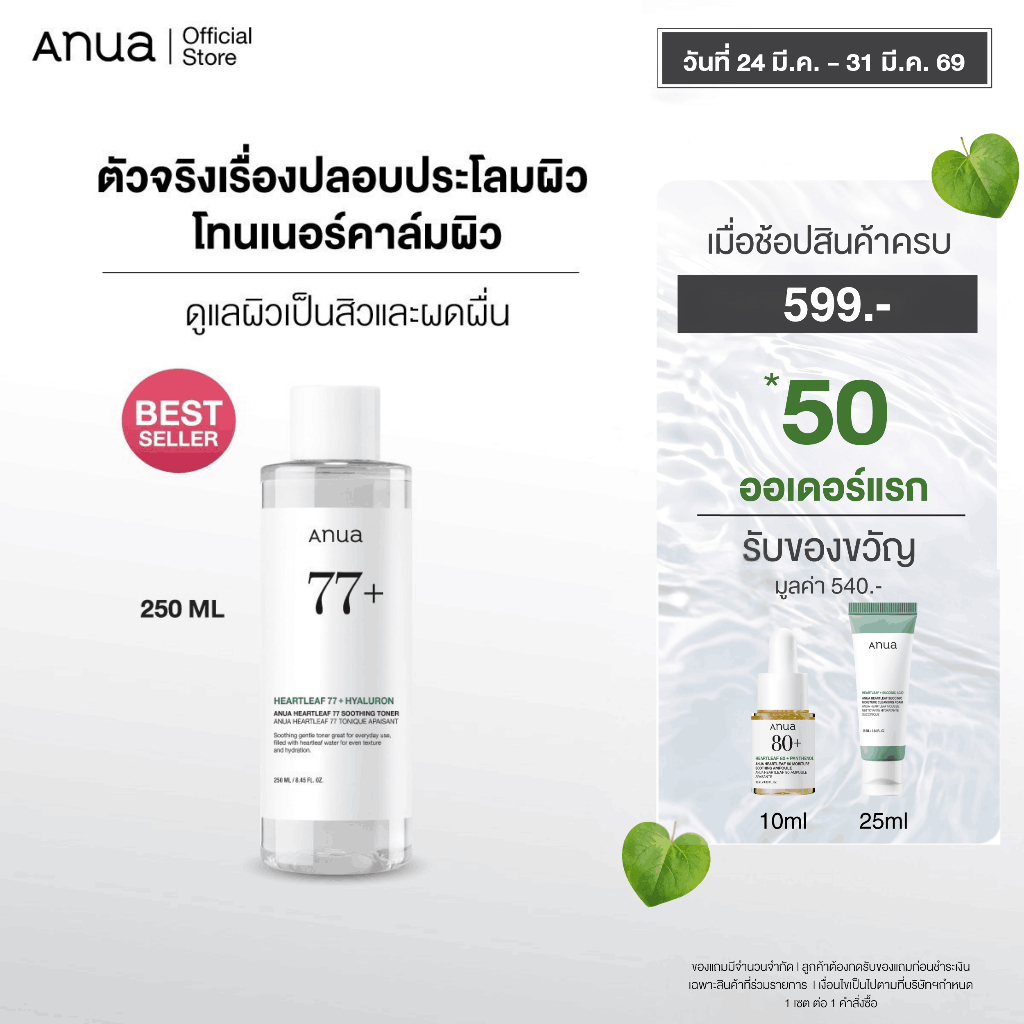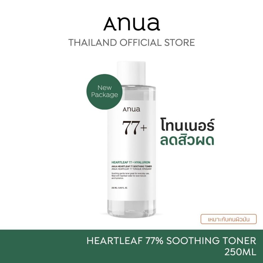 Anua Heartleaf 77 Soothing Toner อานัว โทนเนอร์พี่จุน น้ำตบปลอบประโลมผิว ลดผดผื่น ลดสิว กระชับรูขุมขน ผิวชุ่มชื้น 250ml