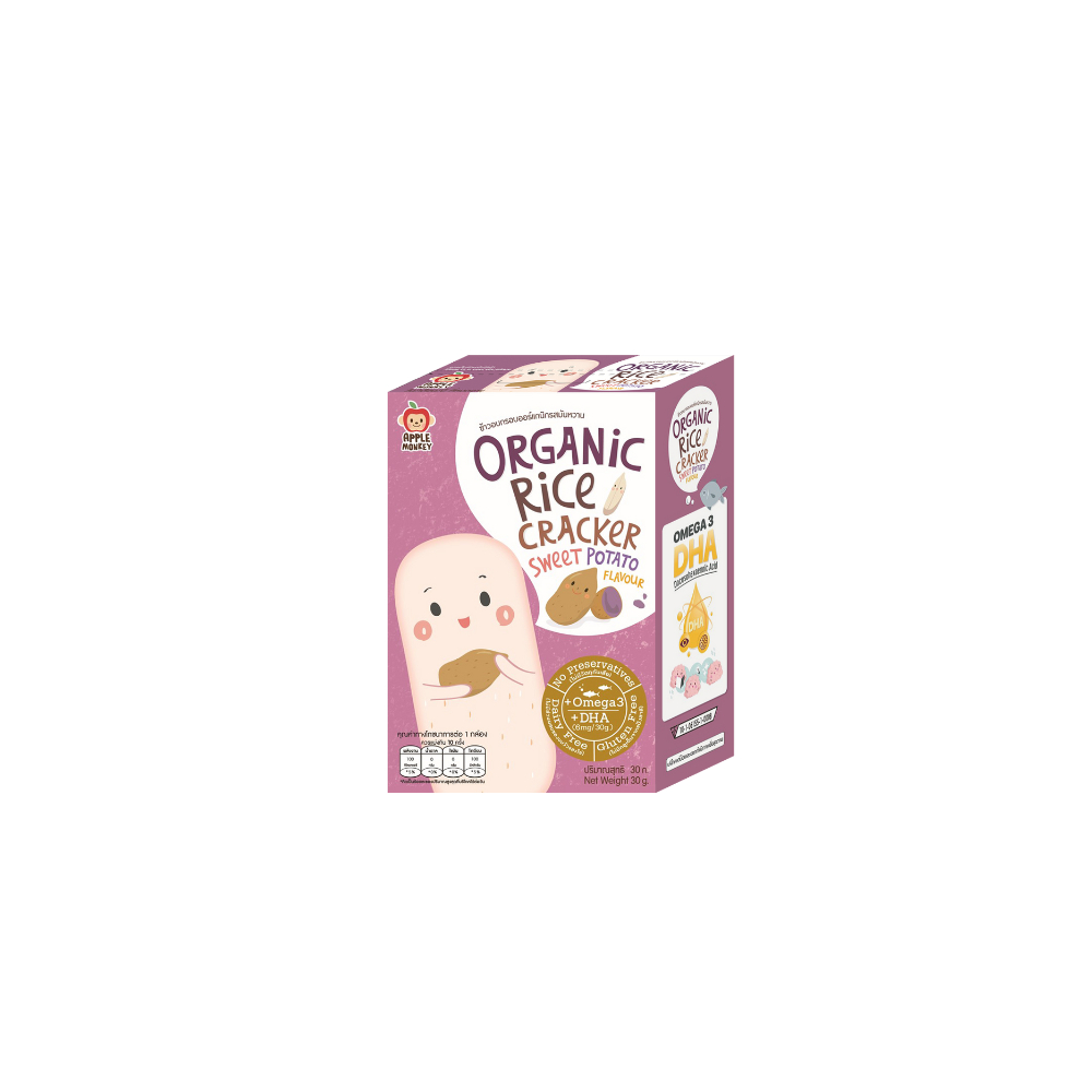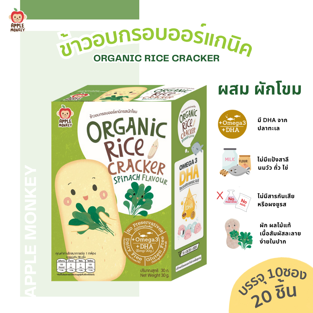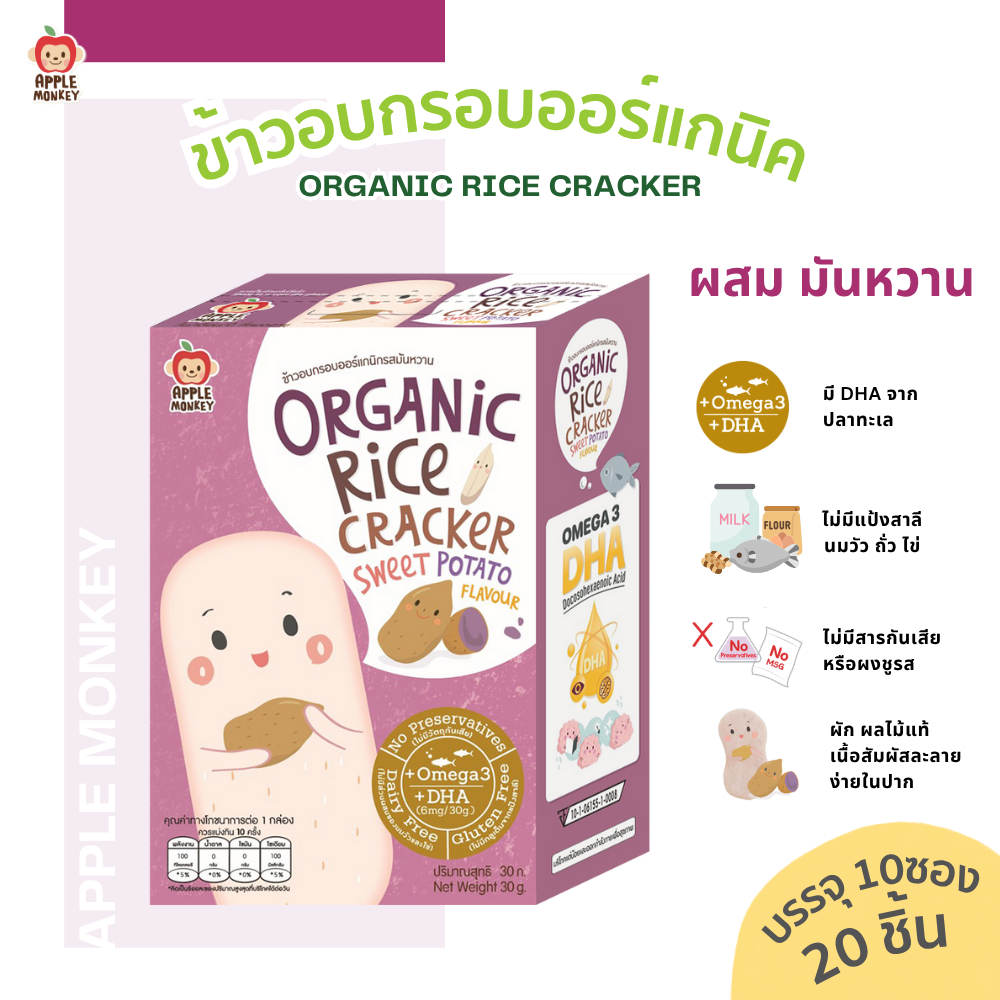 APPLE MONKEY ข้าวอบกรอบออร์แกนิก 1 กล่อง แพ็ค 10 ซอง 30 กรัม