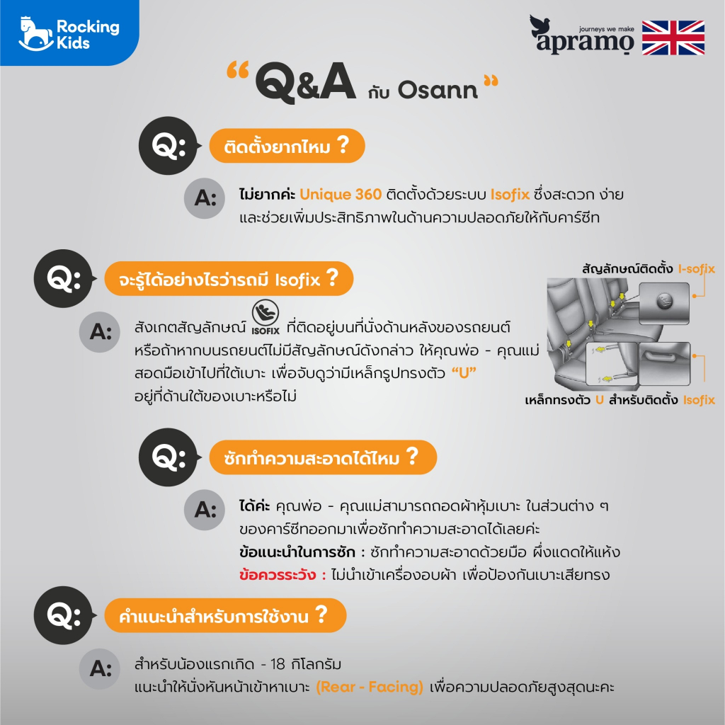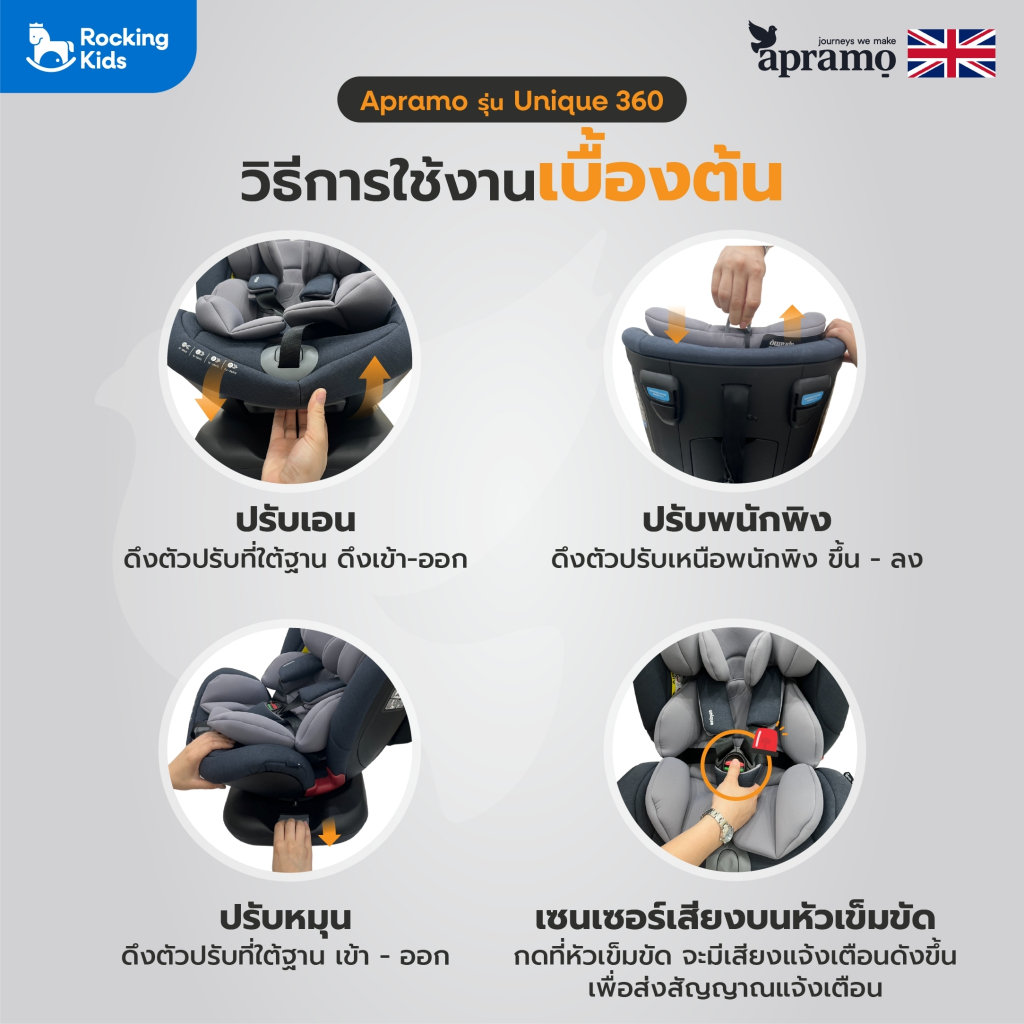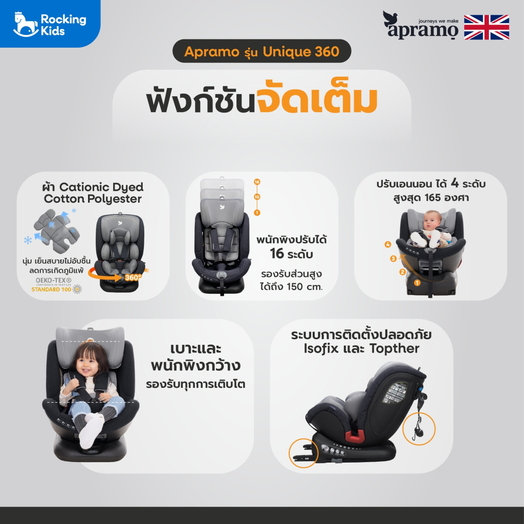 คาร์ซีท APRAMO รุ่น UNIQUE หมุนได้ 360 องศา สำหรับน้องแรกเกิด -12ปี