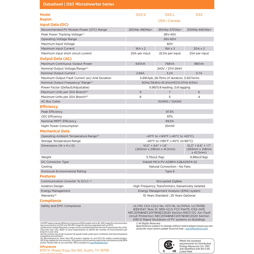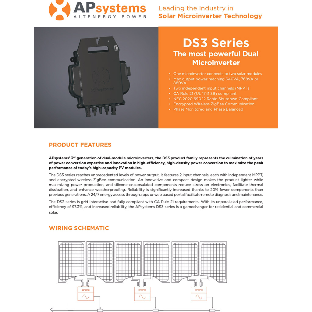 APsystems DS3 Microinverter Single Phase