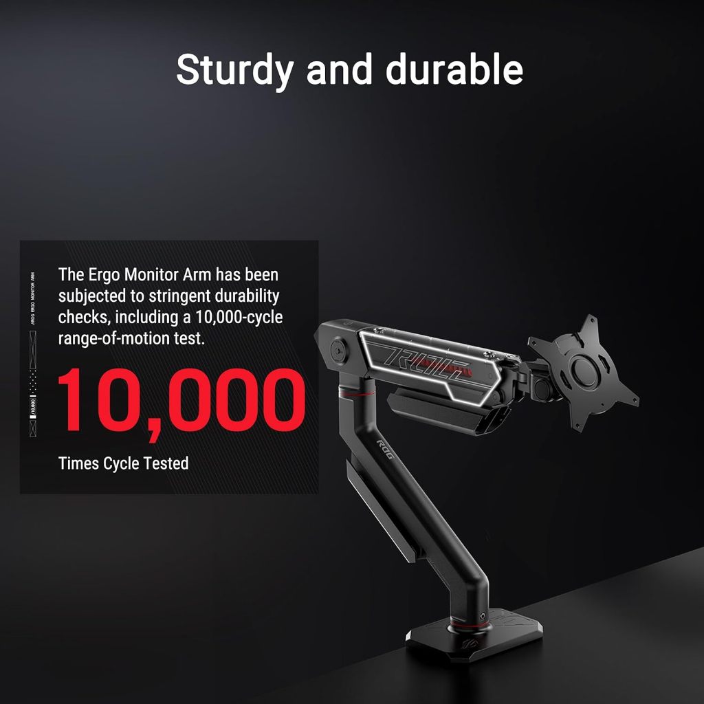 ASUS ROG Ergo Monitor Arm, Ergonomic, Pivot, Swivel, Height Fully Adjustable up to 39" VESA 100x100, Mechanical Spring