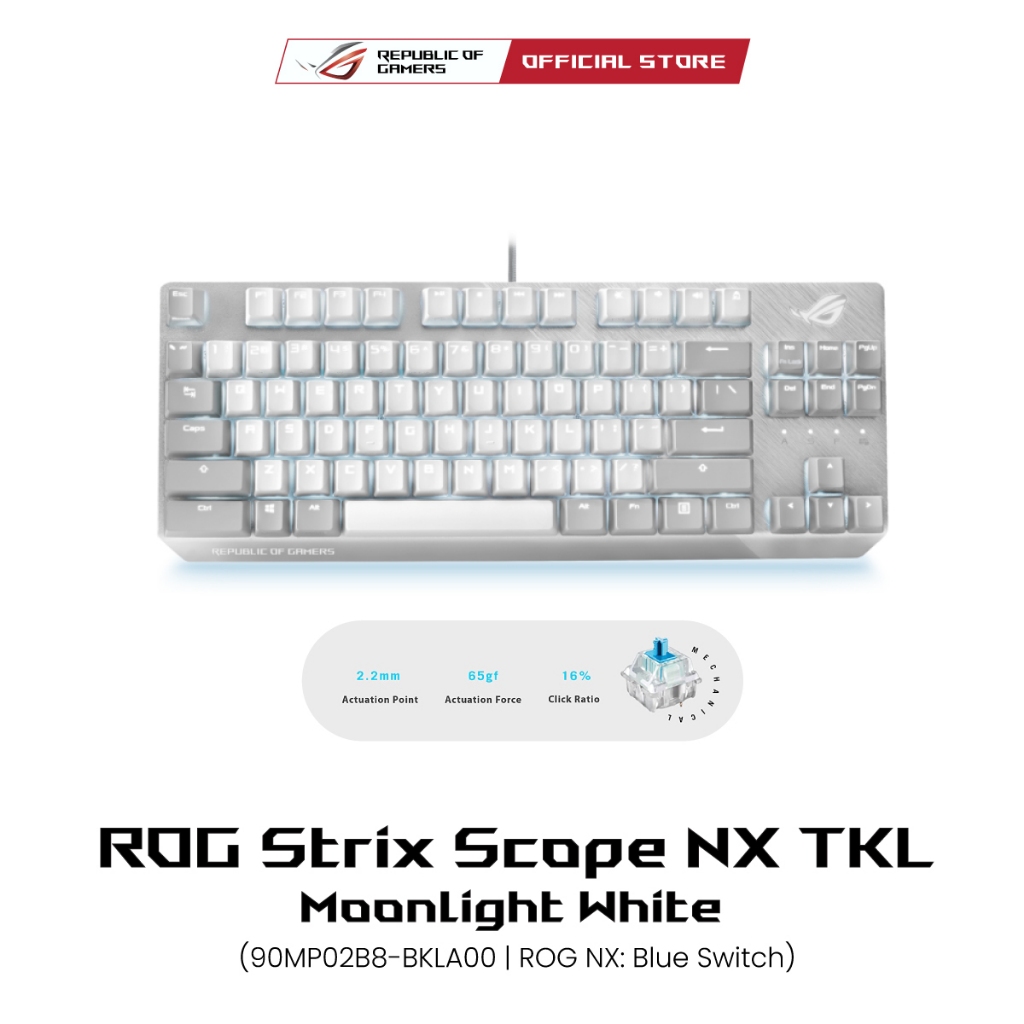 ASUS ROG Strix Scope NX TKL Moonlight White, Wired mechanical RGB gaming keyboard for FPS games, with ROG NX switches, aluminum frame, and Aura Sync lighting