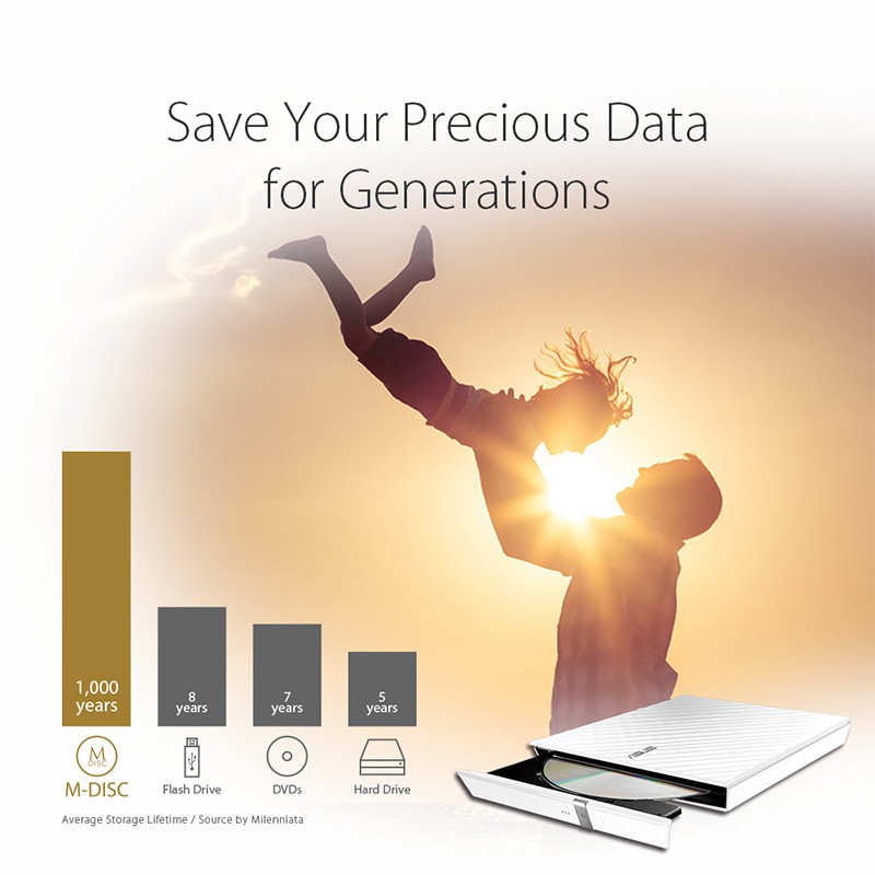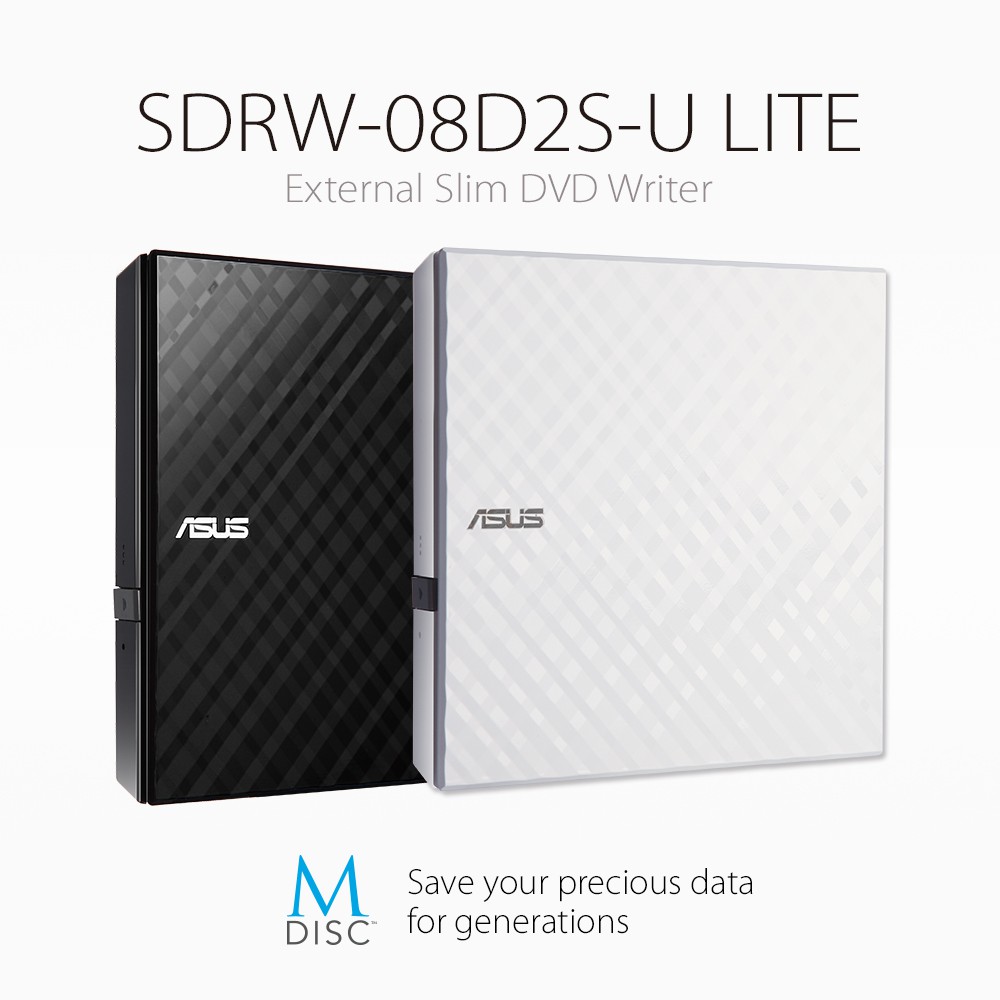 ASUS SDRW-08D2S-U LITE, portable 8X DVD burner with M-DISC support for lifetime data backup, compatible for Windows and Mac OS