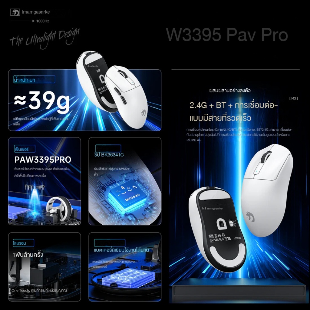 ATTACK SHARK X MAMBASNAKE M3 39g เมาส์เล่นเกมไร้สายน้ําหนักเบา PAW3395PRO
