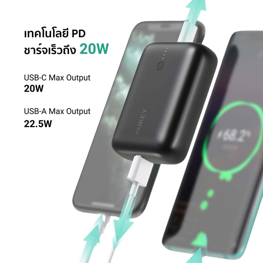 [สินค้าขายดี] AUKEY PB-N83S พาวเวอร์แบงค์ชาร์จเร็ว 10,000 mAh ขนาดเล็ก ชาร์จเร็วด้วย PD20W SCP22.5W