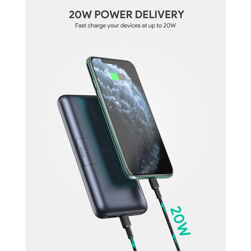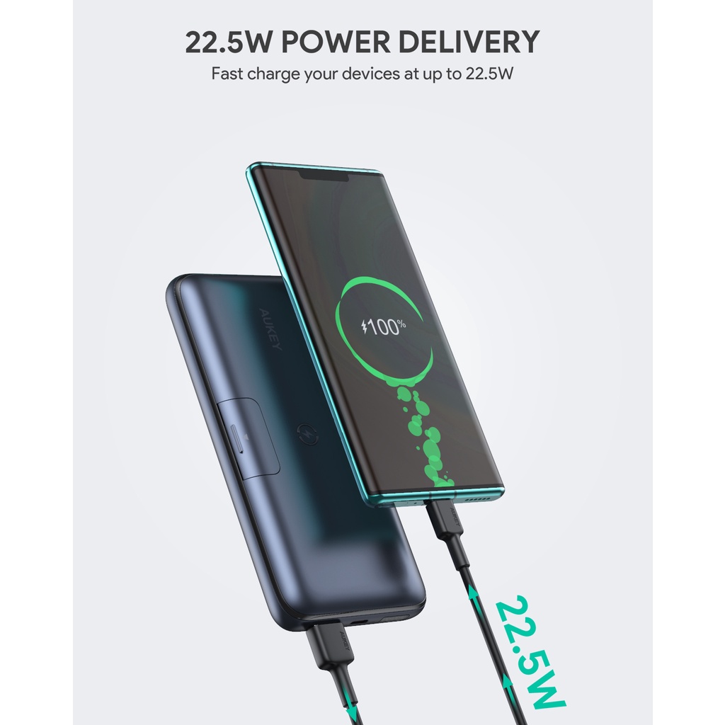 [สินค้าขายดี] AUKEY PB-WL03S พาวเวอร์แบงค์ชาร์จเร็ว 20000mAh PD 20W & SCP 22.5W ชาร์จไร้สาย 10W