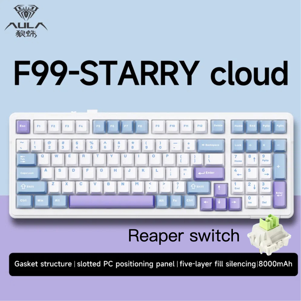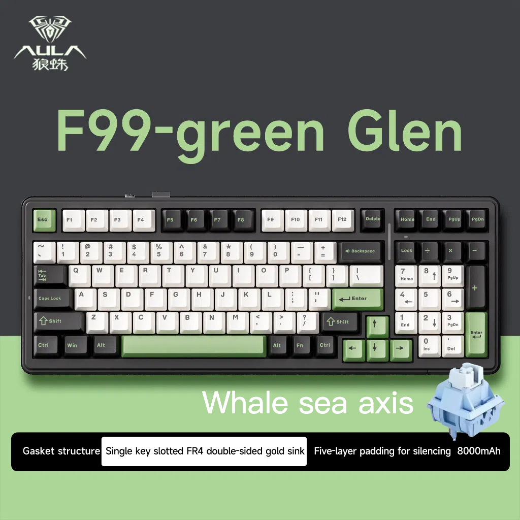 AULA F99 customized RGB mechanical keyboard gasket structure full key hot-swap wireless three-mode bluetooth game