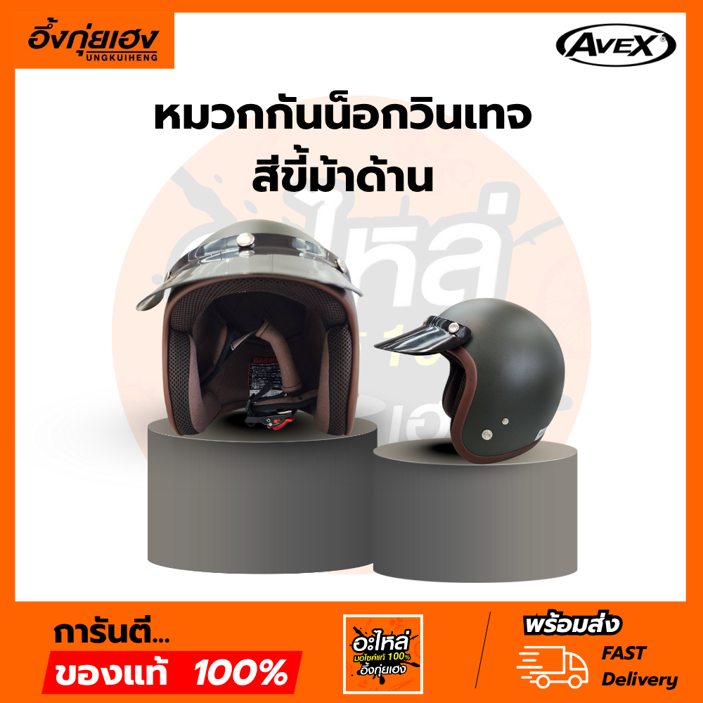 AVEX หมวกกันน็อควินเทจ LB (คิ้วเดินด้าย) ถอดนวมซักได้ (แถมแก๊ปบังแดดทุกใบ)
