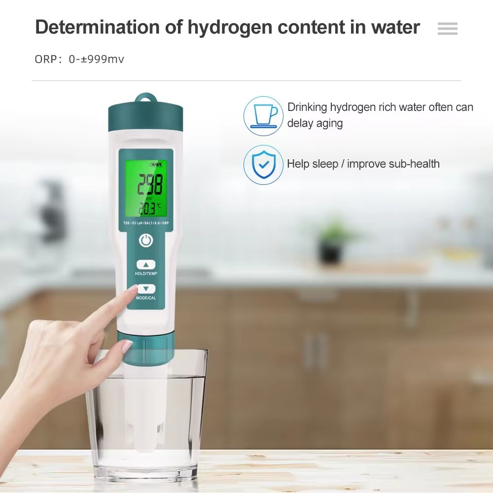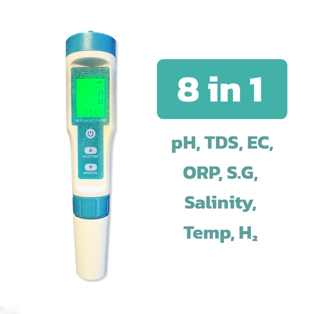 เครื่องวัดคุณภาพน้ำ 8 in 1 รุ่นC-600 วัดค่า pH, TDS, EC, ORP, S.G, Salinity, Temperature, H₂ 10015