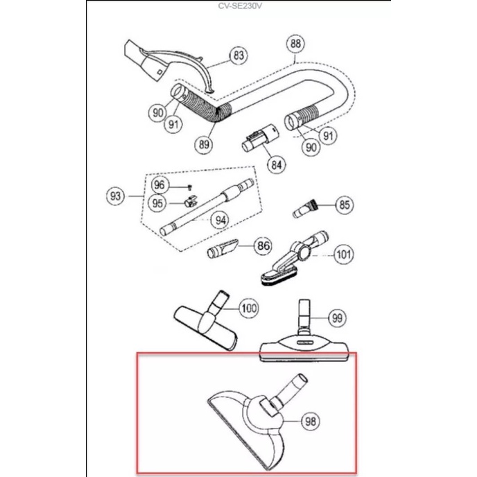 HITACHI อะไหล่แท้ หัวเครื่องดูดฝุ่น ฮิตาชิ CV-SE230V*014 ตำแหน่งที่ 98 ASSY BRUSH รุ่น CV-SE230V