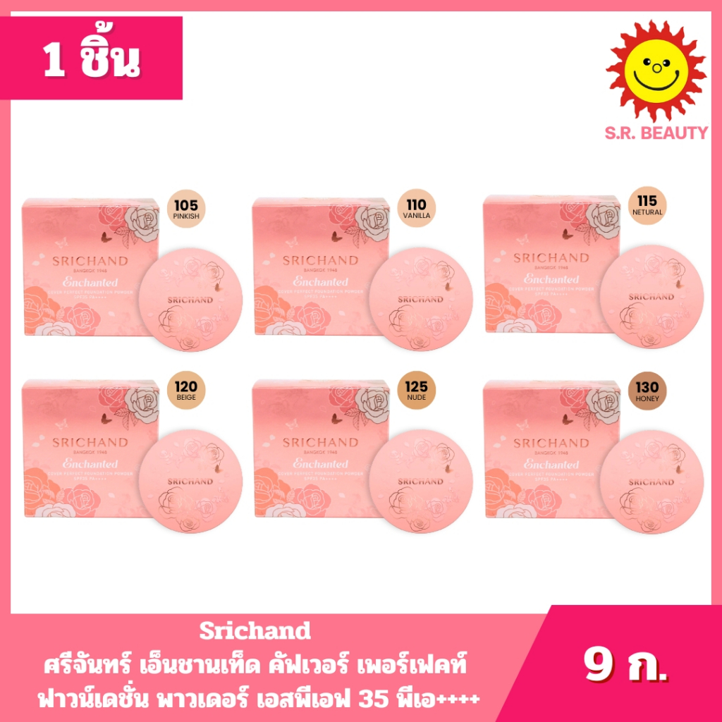 [ 1 ชิ้น] Srichand ศรีจันทร์ เอ็นชานเท็ดคัฟเวอร์ ฟาวน์เดชั่นพาวเดอร์ SPF 35 พีเอ+++ ขนาด 9 ก. 6 สูตร