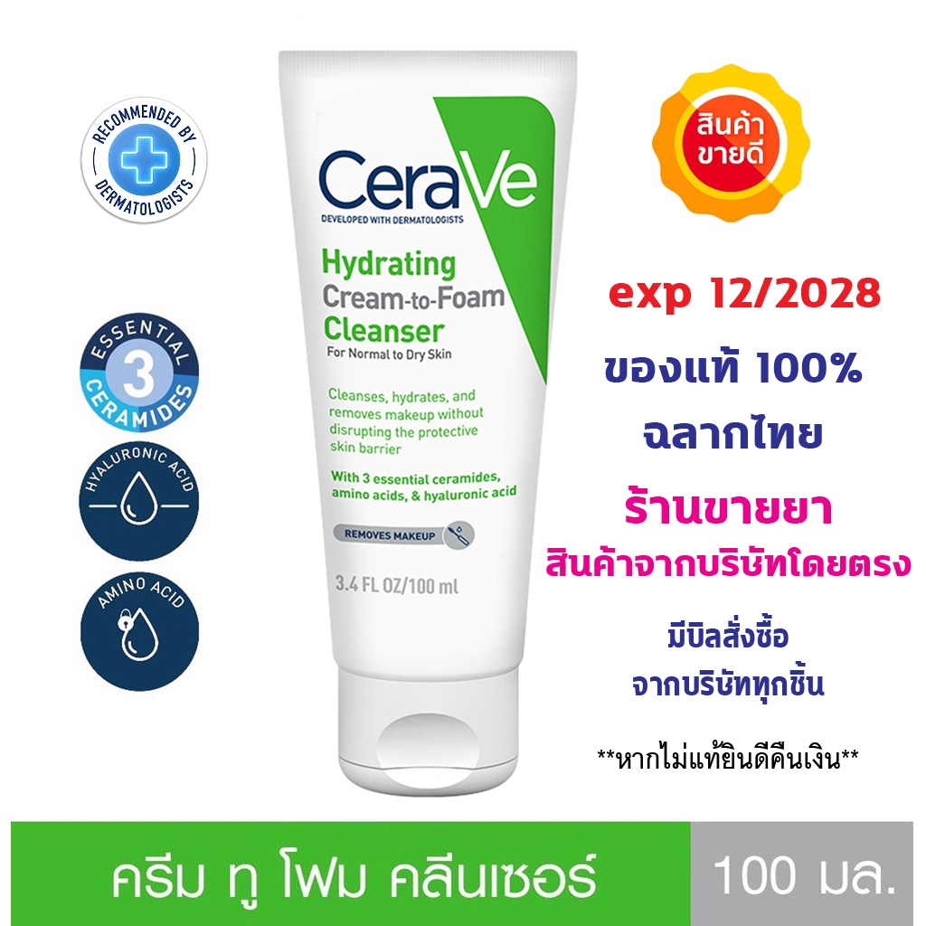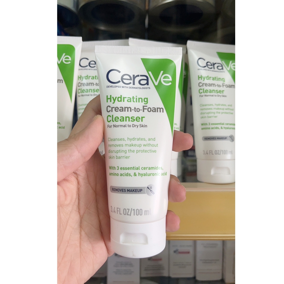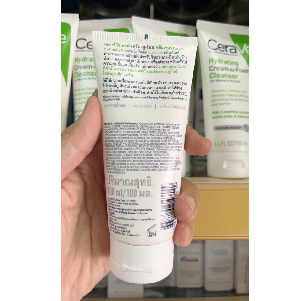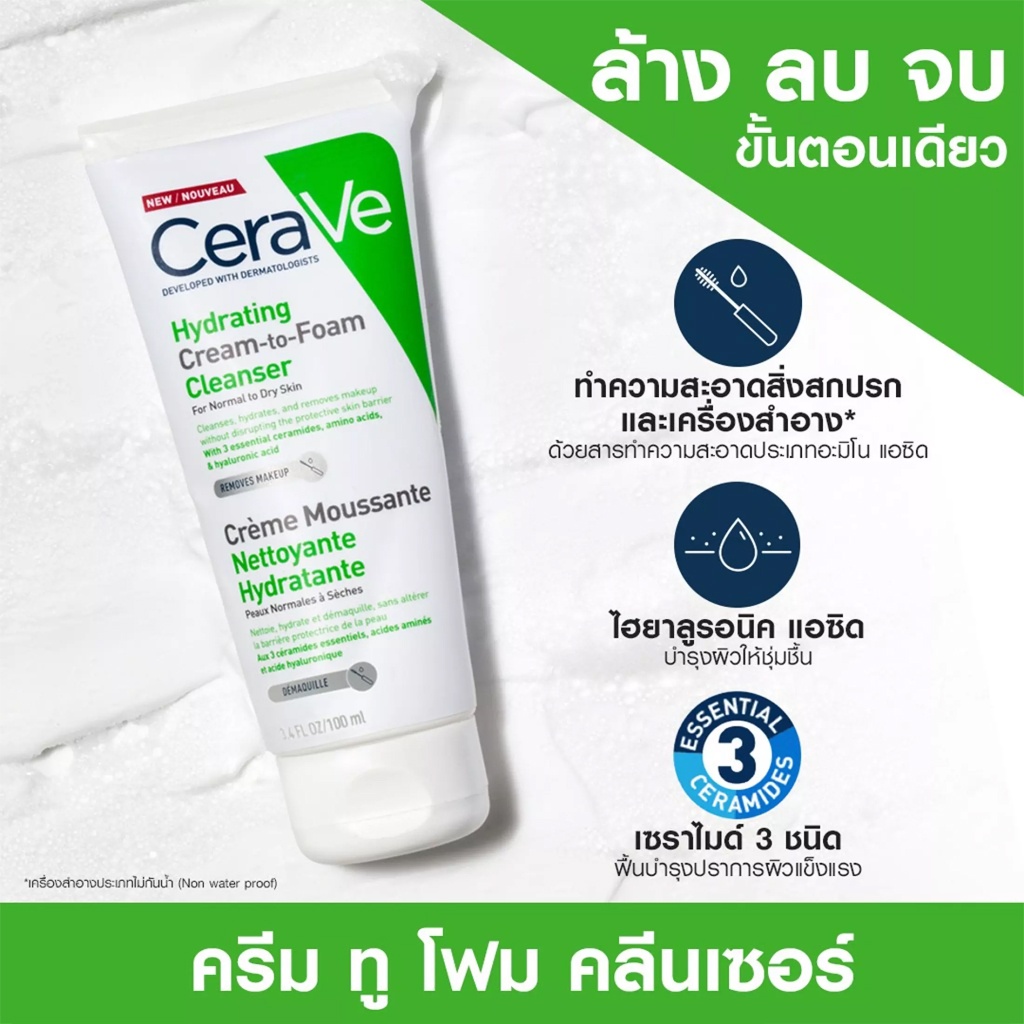 🔥แท้100% พร้อมส่ง 🔥Cerave Hydrating Cream-to-Foam Cleanser 100 ml. ความสะอาดและล้างเครื่องสำอางขั้นตอนเดียว ผิวสะอาด ดี