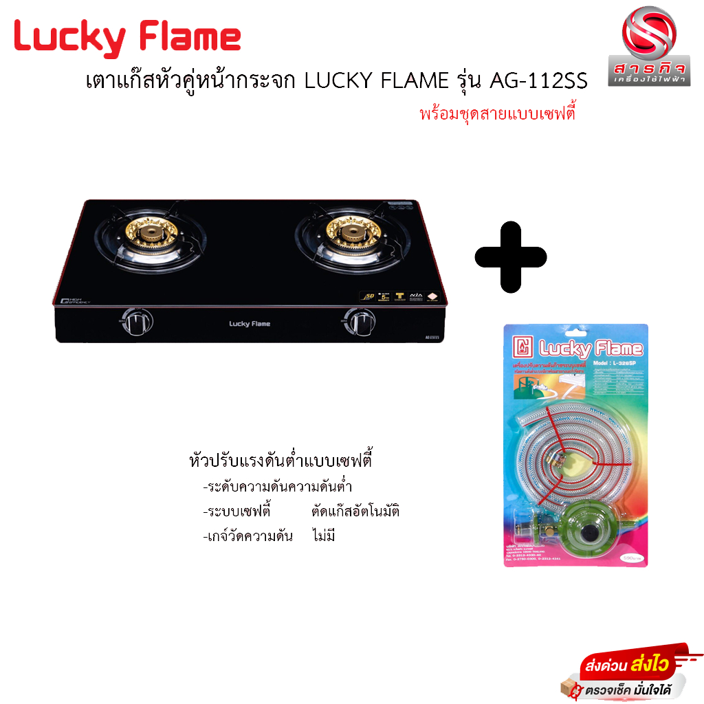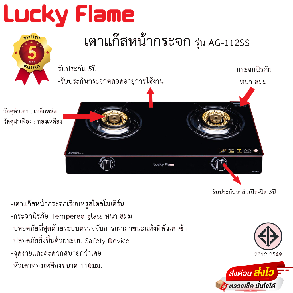 Lucky flame เตาแก๊สตั้งโต๊ะ หัวเตาทองเหลือง รุ่น AG-112SS มีระบบ Safety ตัดแก๊ส