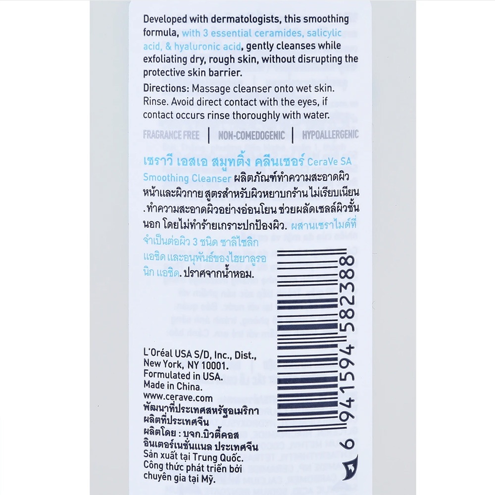 Cerave SA Smoothing Cleanser ทำความสะอาดผิวหน้า สำหรับผิวหยาบกร้าน ไม่เรียบเนียน ขวด 88 ML.