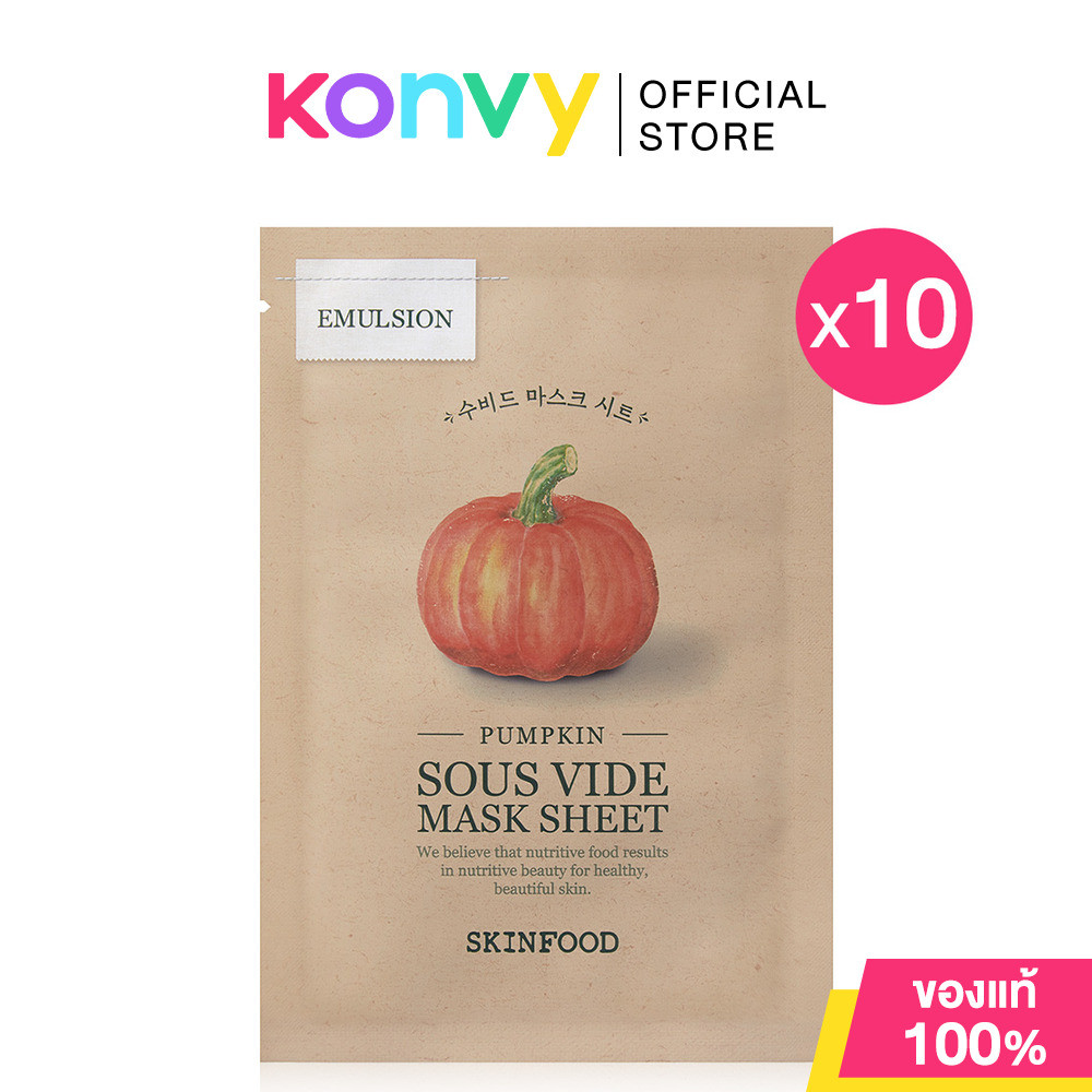 Skinfood Pumpkin Sous Vide Mask Sheet [20g x 10pcs] สกินฟู๊ด แผ่นมาสก์สูตรอิมัลชัน ผสานสารสกัดฟักทอง.
