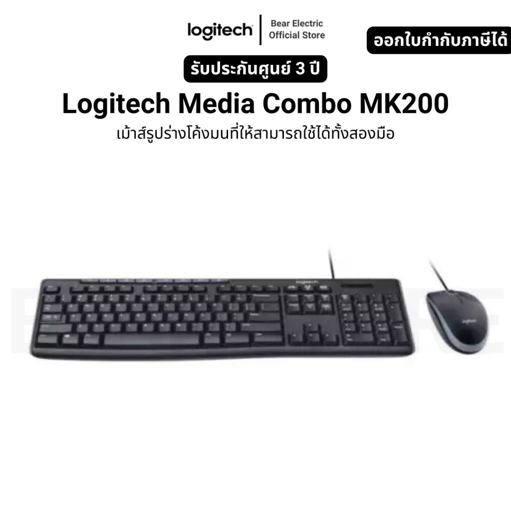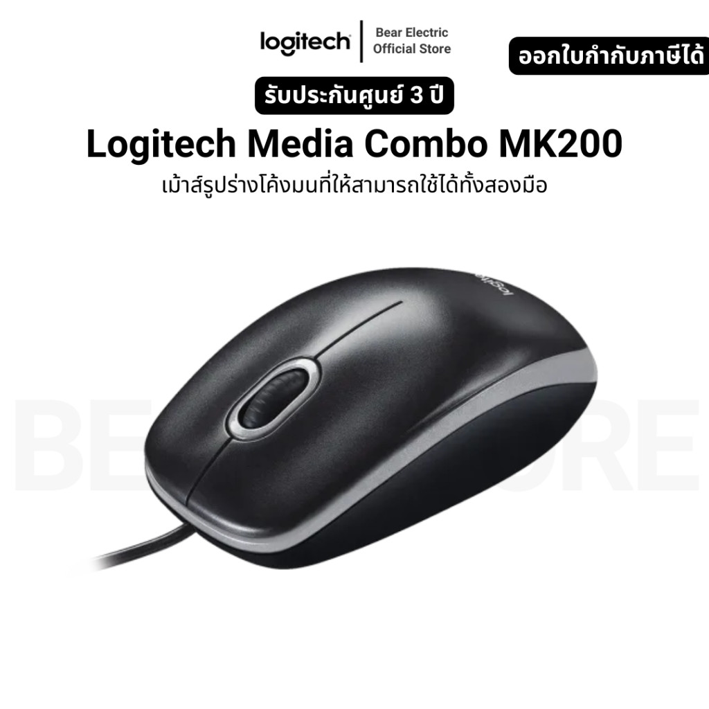 Logitech Media Combo MK200 เม้าส์รูปร่างโค้งมนที่ให้สามารถใช้ได้ทั้งสองมือ รับประกัน 3 ปี
