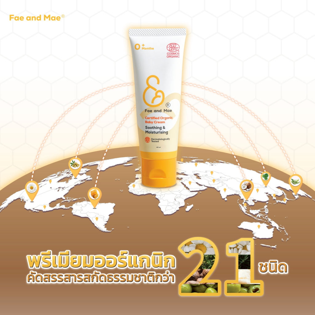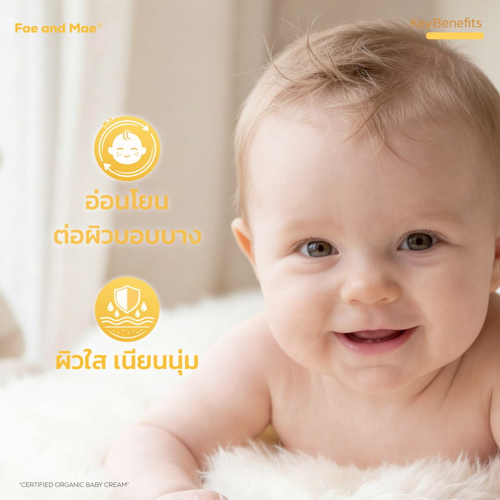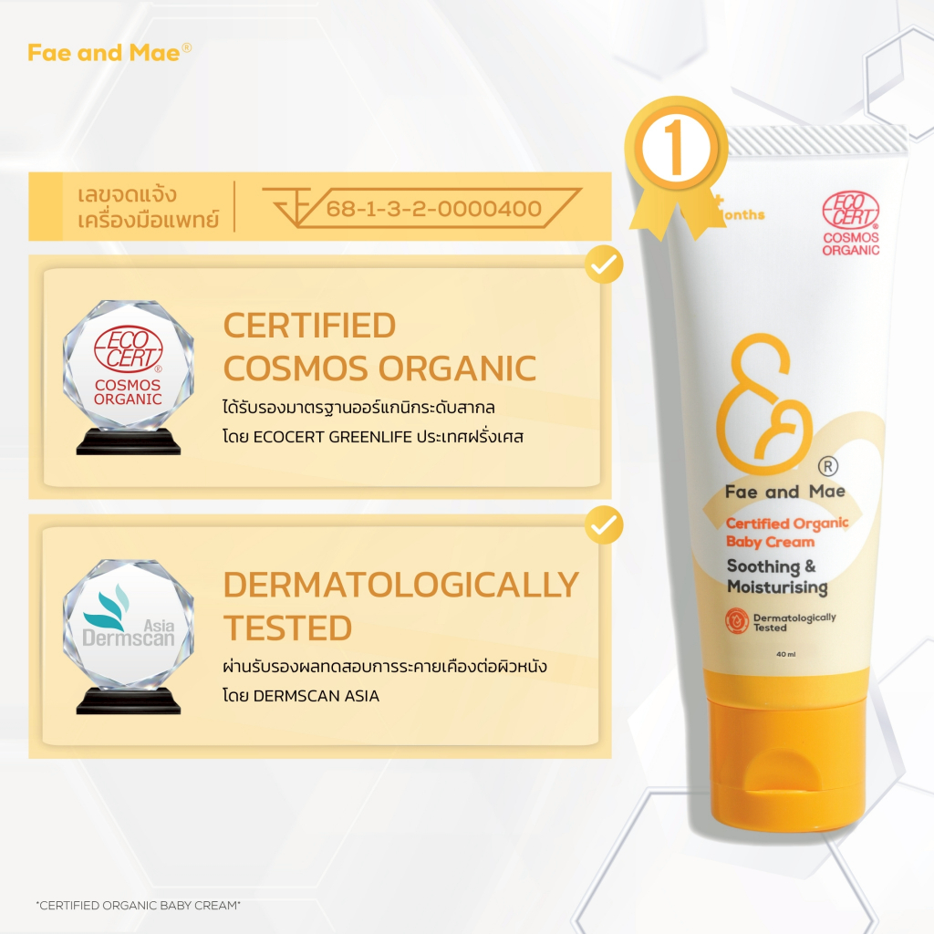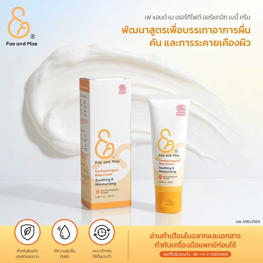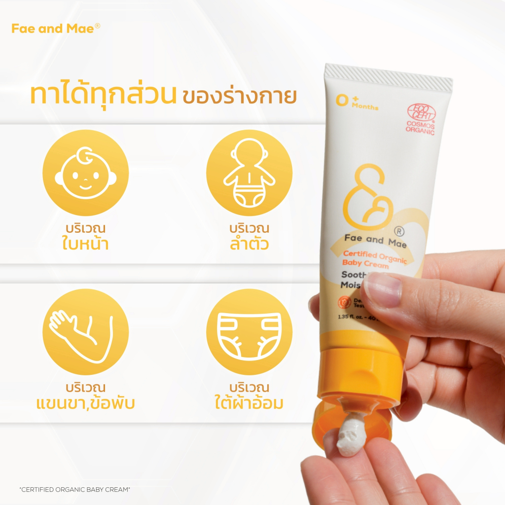 Fae and Mae เฟ แอนด์ เม Certified Organic Baby Cream ครีมออร์แกนิกเด็ก ผดผื่น ผื่นผ้าอ้อม ผื่นคัน ใบหน้า ลำตัว 20-40 มล