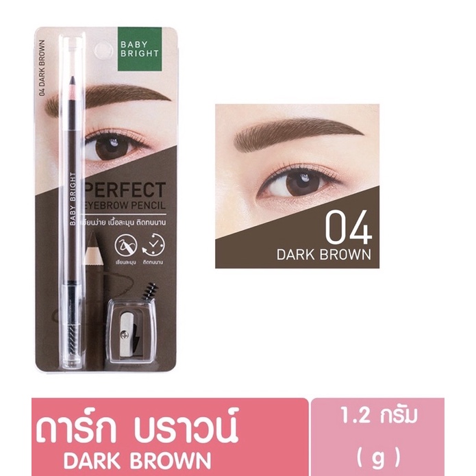 Baby Bright Perfect Eyebrow Pencil ดินสอเขียนคิ้ว แถมกบเหลา เบบี้ไบร์ท ดินสอเขียนคิ้ว เนื้อเนียนกันน้ำกันเหงื่อ ขนาด1.2g
