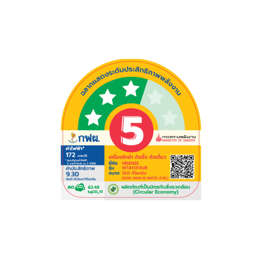 Hisense เครื่องซักผ้าฝาบน ความจุ 13 กก. รุ่น WTJH1313UB