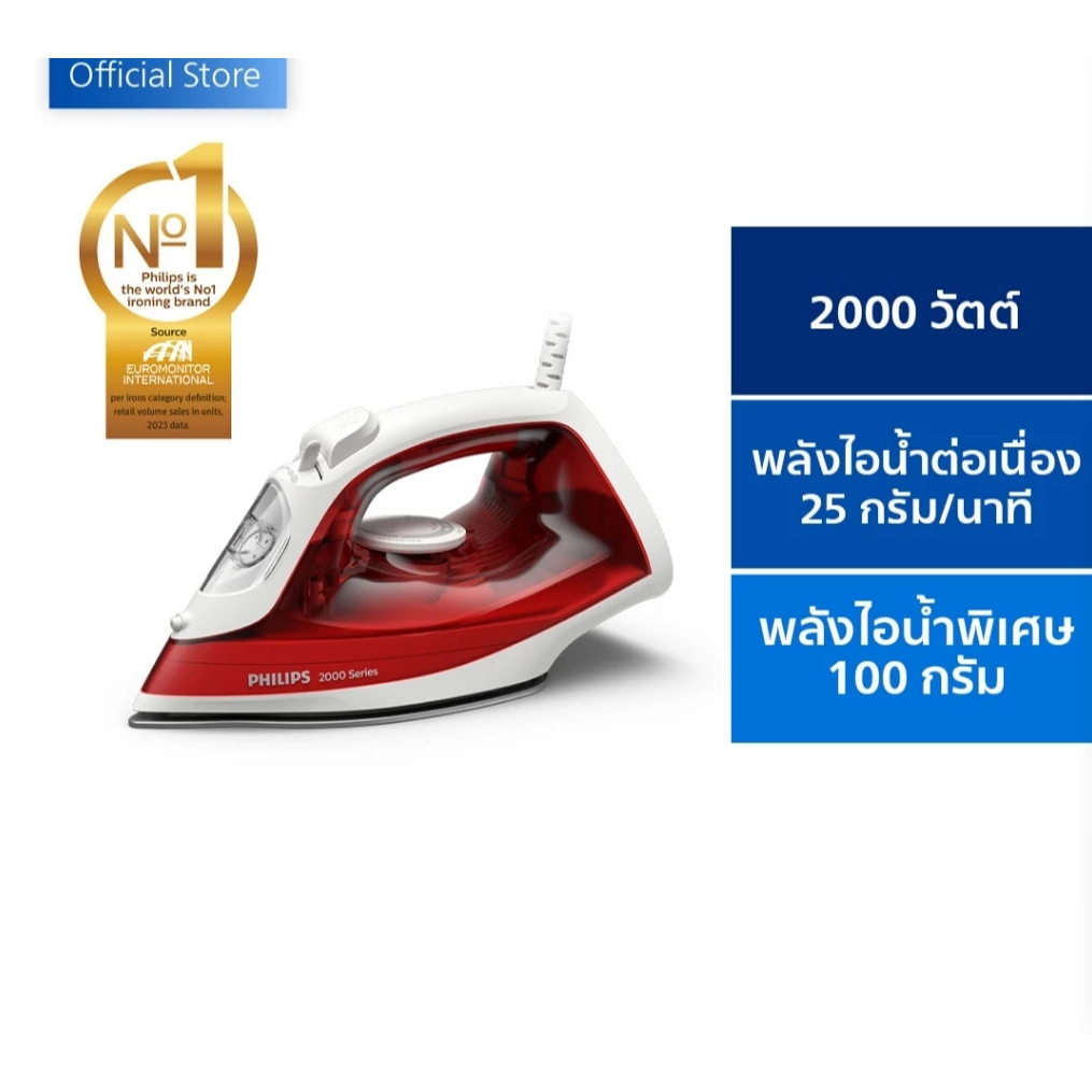 เตารีดไอน้ำ 2000W PHILIPS รุ่น DST2010/40(สีเเดง)