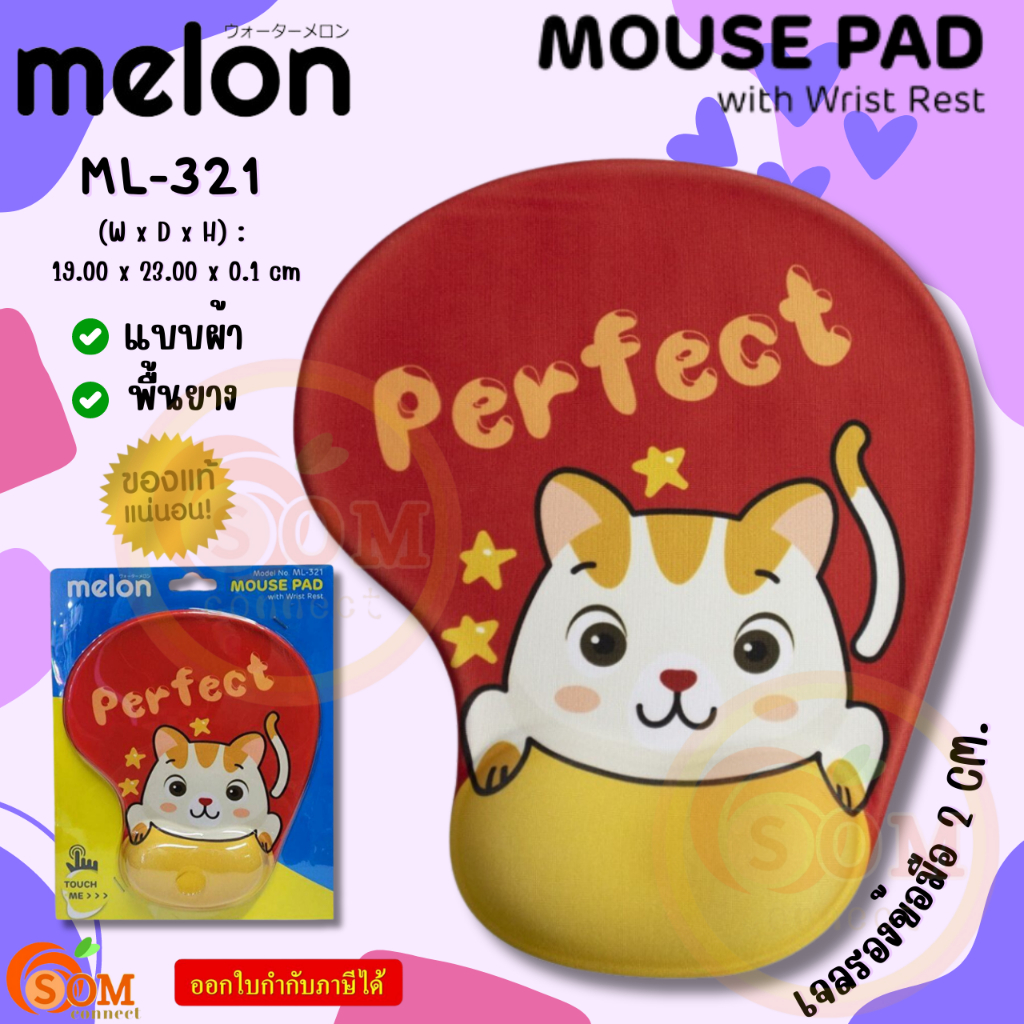 (ML-321-G Perfect) MOUSE PAD แผ่นรองเมาส์แบบผ้า Melon เจลรองข้อมือลดอาการเมื่อยล้า พื้นยาง -ของแท้
