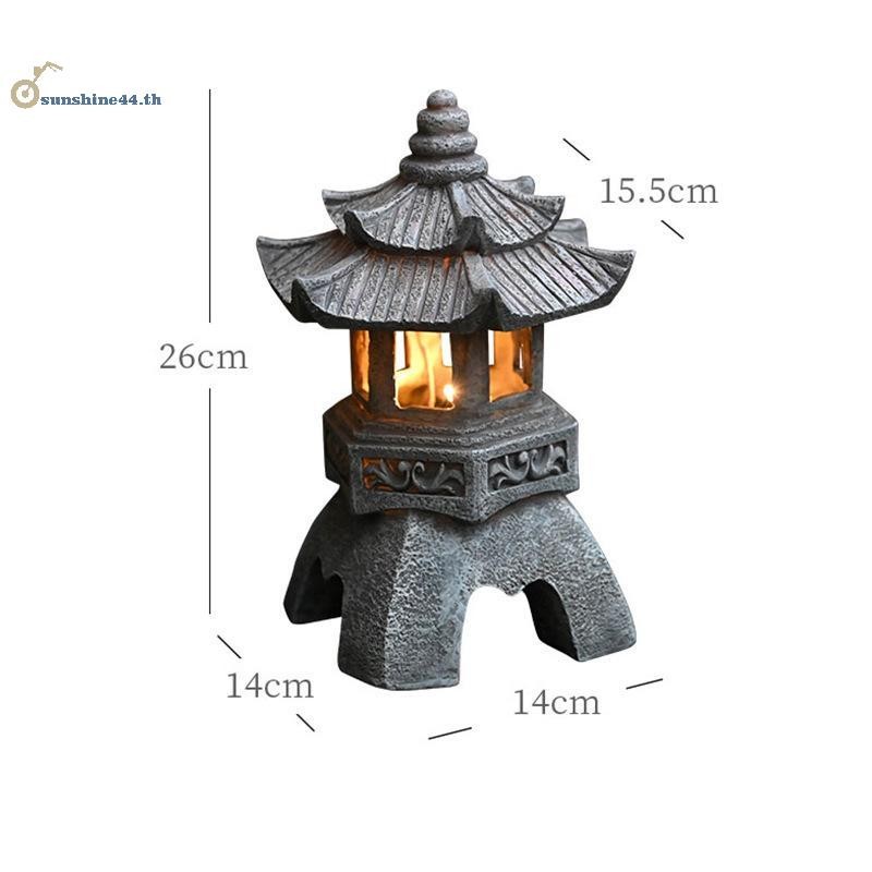 FOURSUN พลังงานแสงอาทิตย์ Zen Pagoda โคมไฟสวนจีนรูปปั้น Courtyard Decor Eco เรซิ่นโคมไฟพลังงานแสงอาทิตย์กลางแจ้งในร่มเครื่องประดับ TH