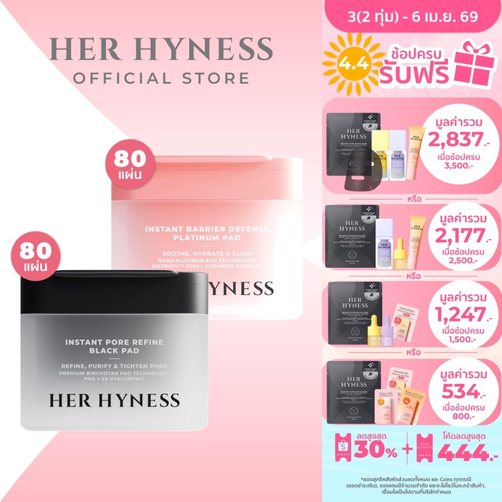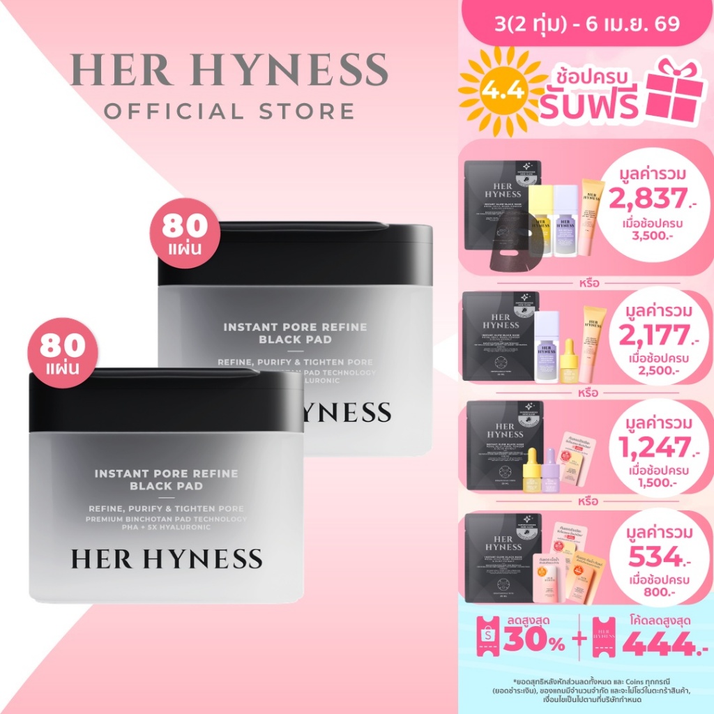 HER HYNESS TONER PADS 80 PADS โทนเนอร์แพด 2 สูตร ขนาด 80 เเผ่น แพดดำและแพดขาว