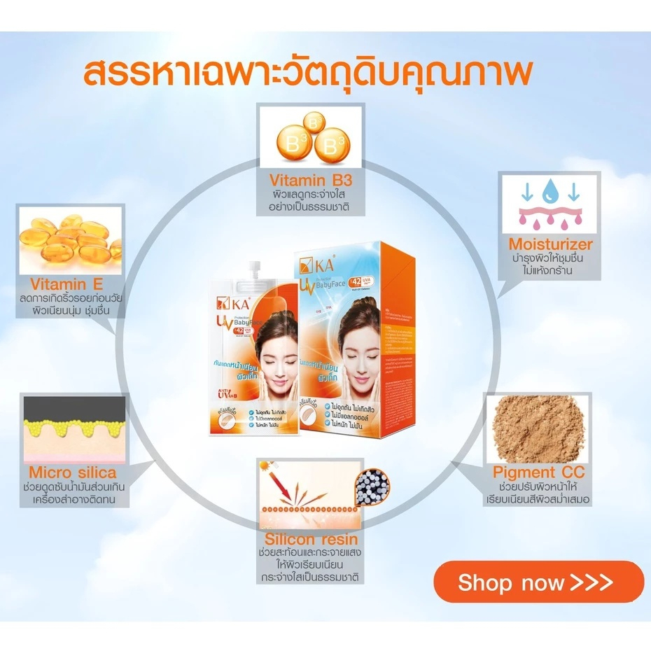 (กล่อง 6 ซอง) KA UV PROTECTION BABYFACE SPF42 PA+++ กันแดดหน้าเนียน (ปริมาณ 8 กรัม)