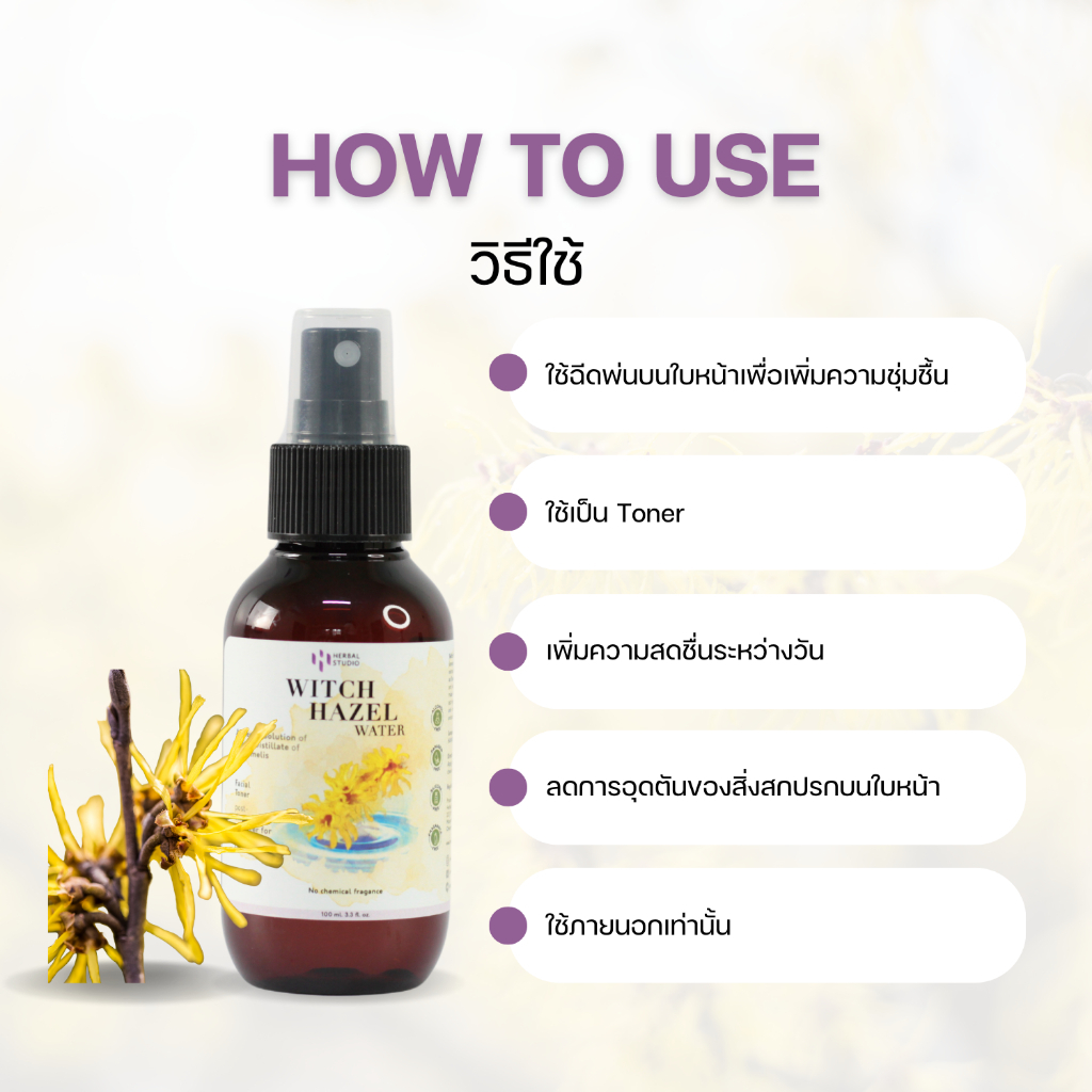 Herbal Studio เฮอบัล สตูดิโอ วิชฮาเซล วอเตอร์ Witch Hazel Water (100 ml)