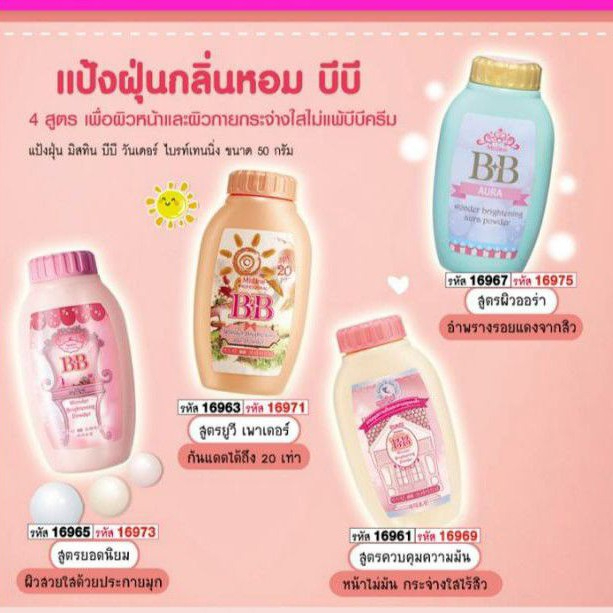 มิสทีน แป้งฝุ่น บีบี พาวเดอร์ 50g Mistine BB Wonder Brightening Powder