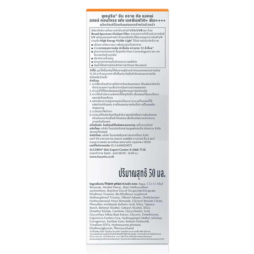 Eucerin ครีมกันแดด ยูเซอริน ซันดราย ทัช แอคเน่ ออยล์ คอนโทรล SPF50+ PA++++ 50 มล.