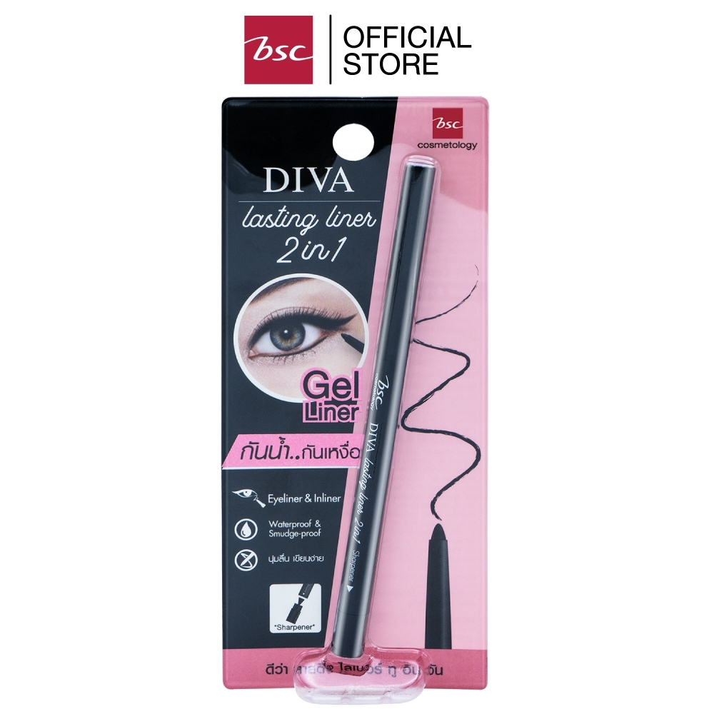 BSC DIVA LASTING LINER 2 IN 1 บีเอสซี ดีว่า ลาสติ้งไลเนอร์ ทู อิน วัน ดินสอเขียนขอบตาแบบหมุนอัตโนมัติที่มาพร้อมกบเหลาในแท่งเดียว